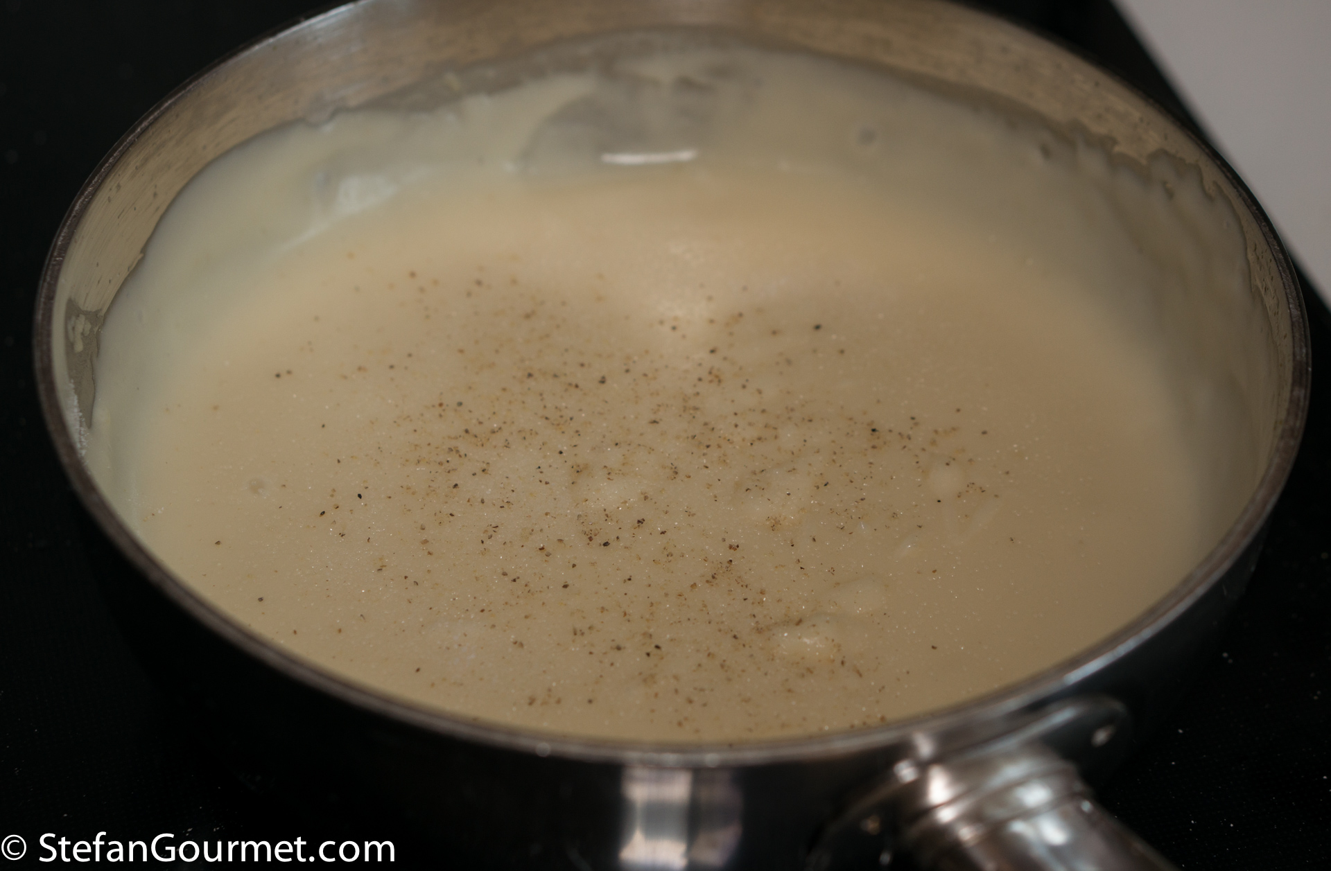 Season the white sauce to taste with salt and freshly ground white pepper.