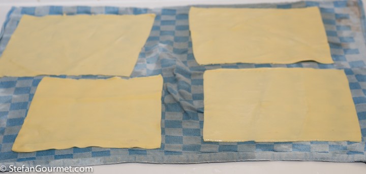 Roll out the fresh pasta dough and cut it into 4 sheets that are slightly smaller than your lasagne dish (as they will expand during cooking), and parboil the sheets for 30 seconds in salted water. Plunge them in cold water to stop the cooking, and spread them out on a dish cloth to dry. Spread them out with your hands to remove any wrinkles.