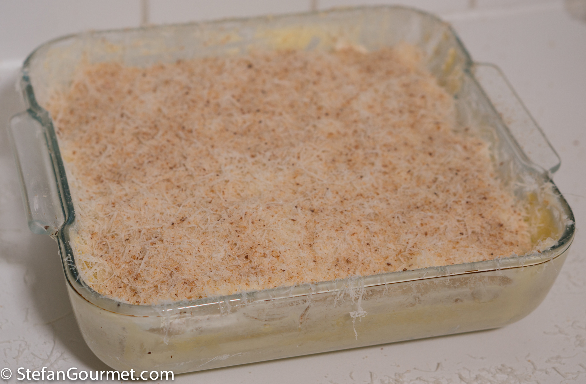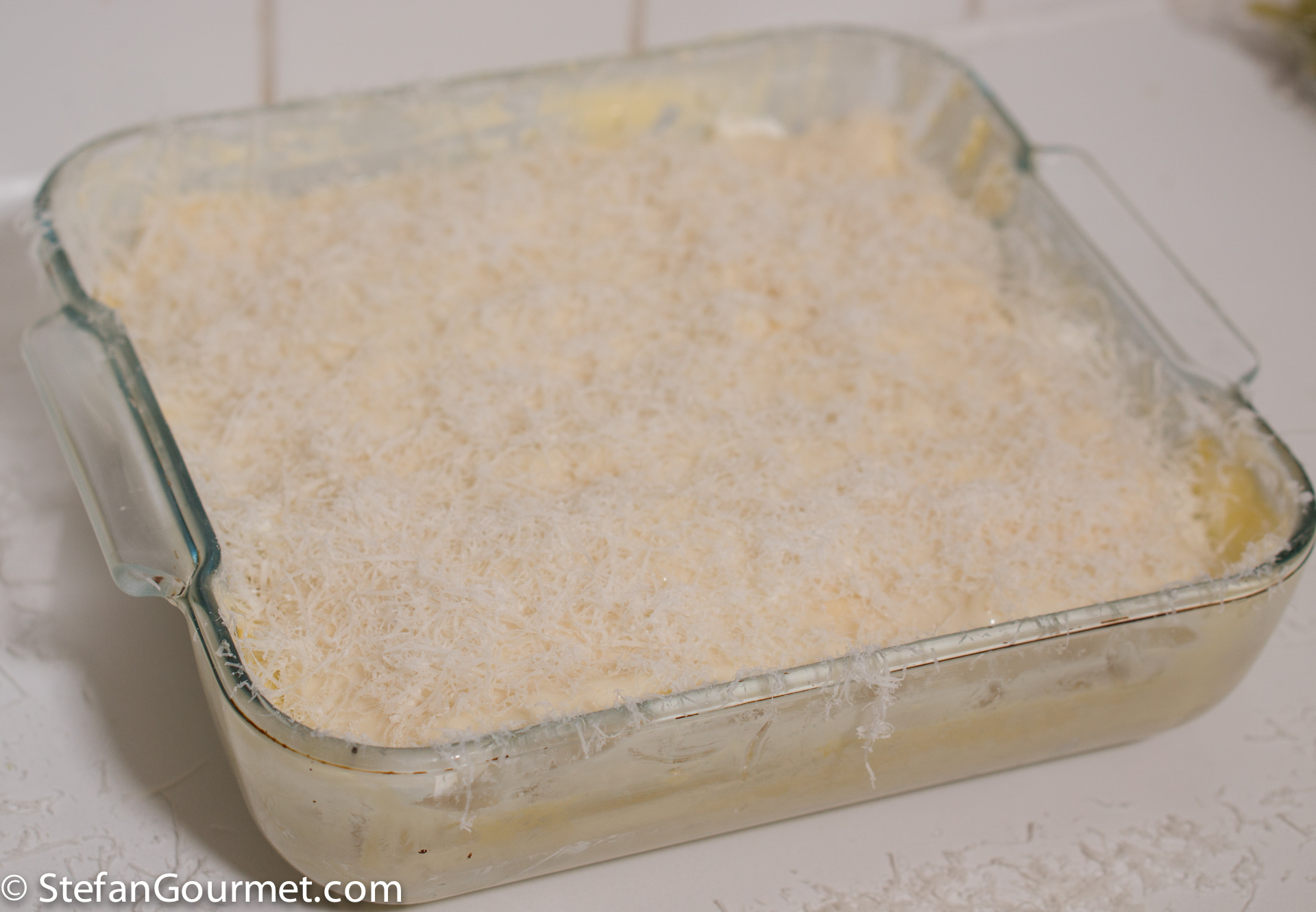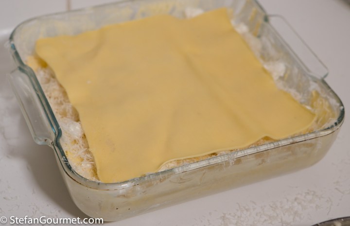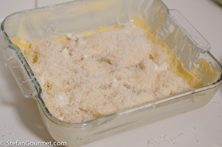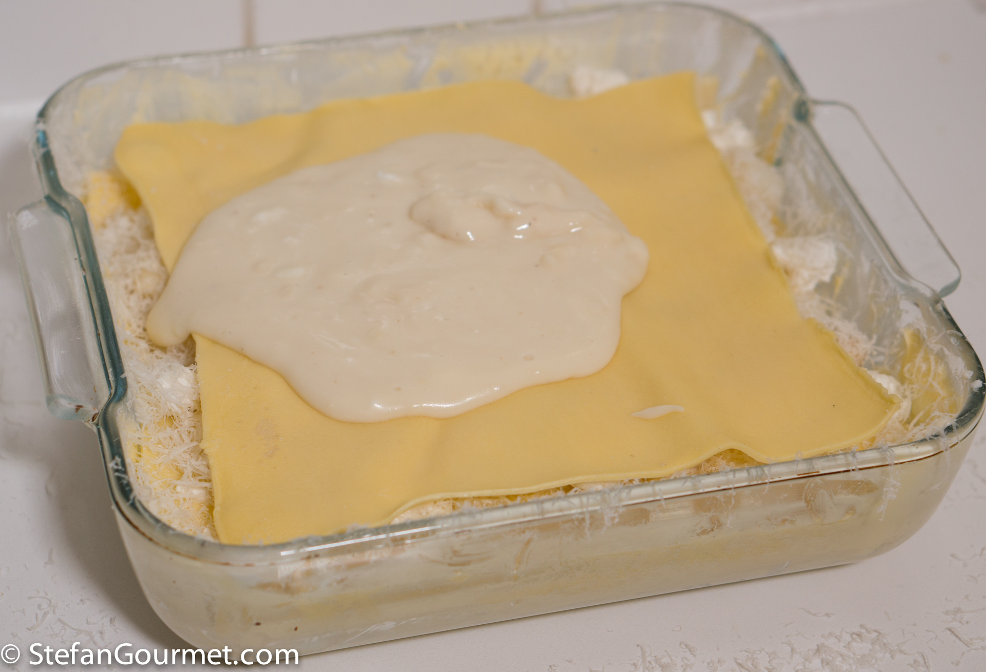 Cover with 1/4 of the white sauce and sprinkle with freshly grated parmigiano.