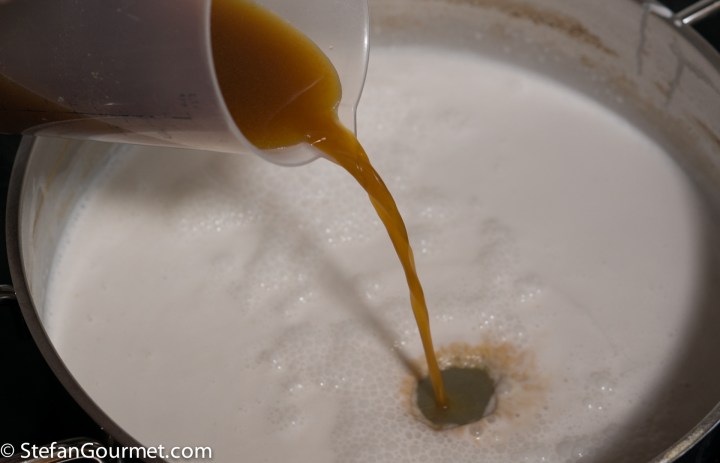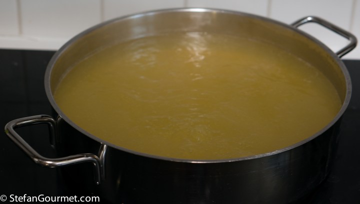 Bring the stock to a boil in a wide pan and then simmer it over medium heat…