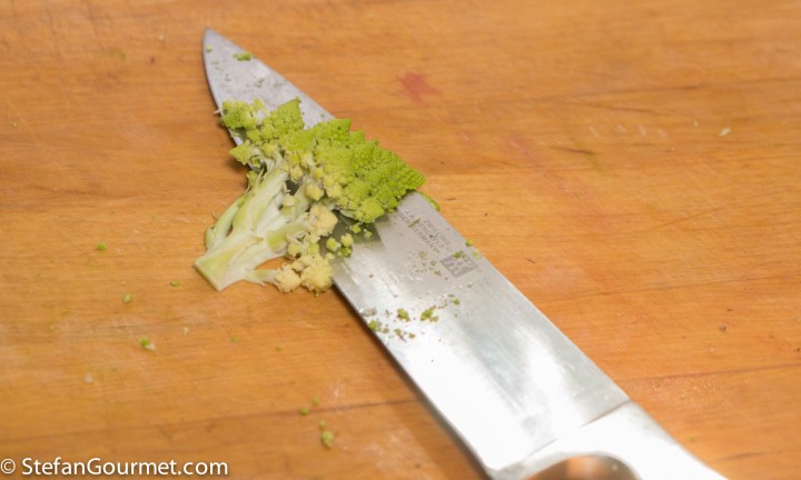 Reserve the romanesco slices in a bowl with cold water and refrigerate to keep them crunchy.