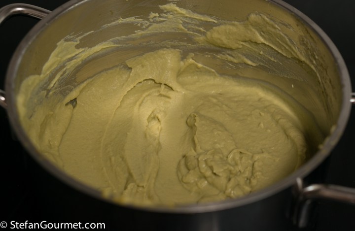 Blend the romanesco and curry paste with the cream until very smooth. If you don’t have a strong blender like a Vitamix, you could use a foodmill to make the romanesco mousse more smooth, or push it through a sieve. Taste and add salt or more curry paste as needed (cook the curry paste in oil as before).