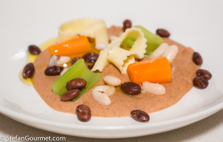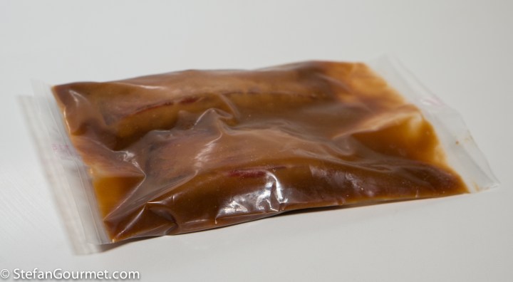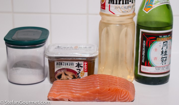 Curing fish improves its texture for cooking sous-vide, and this miso cure also adds flavor. This recipe is often prepared with black cod, a type of fish that is not available here. I prepared it with salmon instead, and it turned out great. An advantage of the technique I used here is that you can use the same bag for marinating as well as cooking the fish. Allow enough time for the cure to penetrate all the way into the salmon, 2 to 3 days.