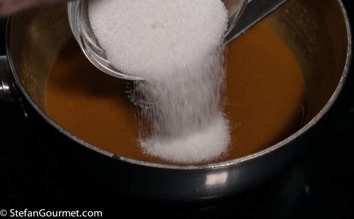 Increase the heat and stir over medium heat until the sugar has dissolved.