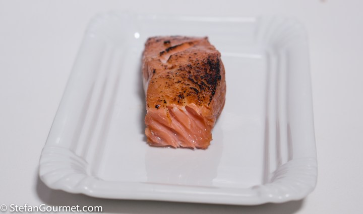 Use a blow torch to slightly char the salmon and increase the serving temperature.