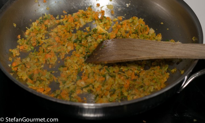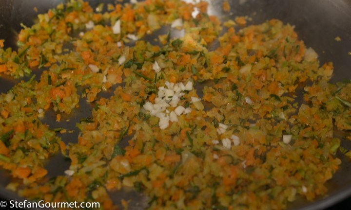 Add minced garlic and stir for another minute. The garlic is added later to make sure it won’t be overcooked.