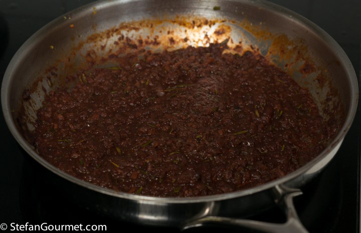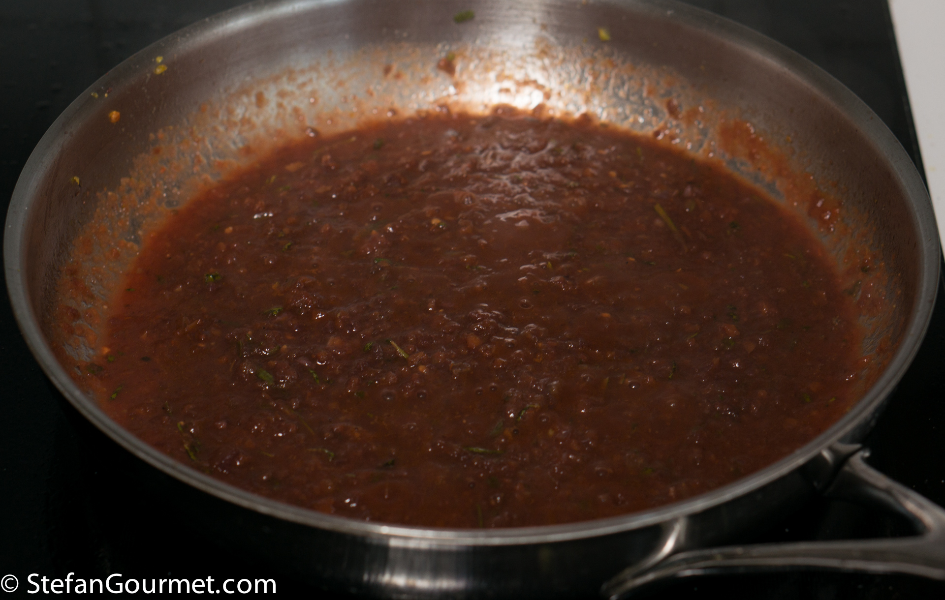 Allow the sauce to simmer until nice and thick, stirring now and then. Turn off the heat and season to taste with salt and freshly ground black pepper. The sauce should be seasoned quite heavily, as the chicken will be seasoned by the sauce.