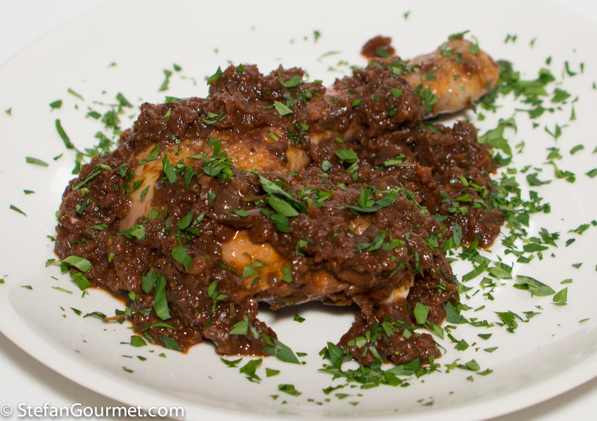 Serve the chicken with the sauce, sprinkled with minced parsley.