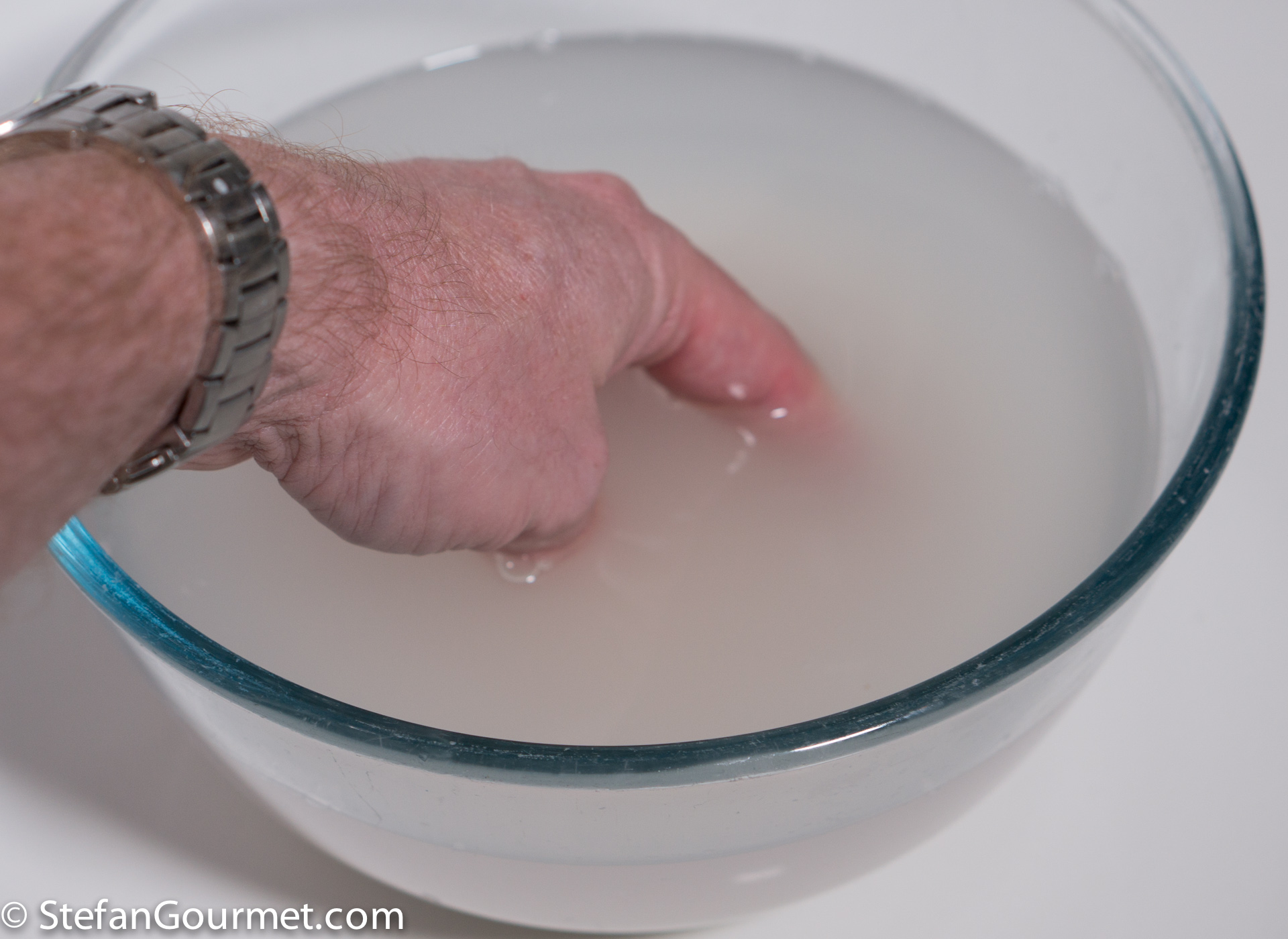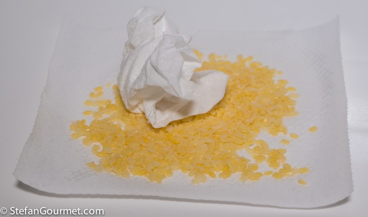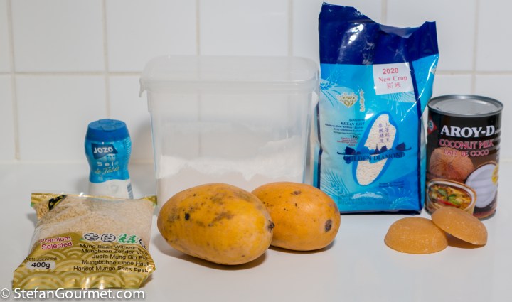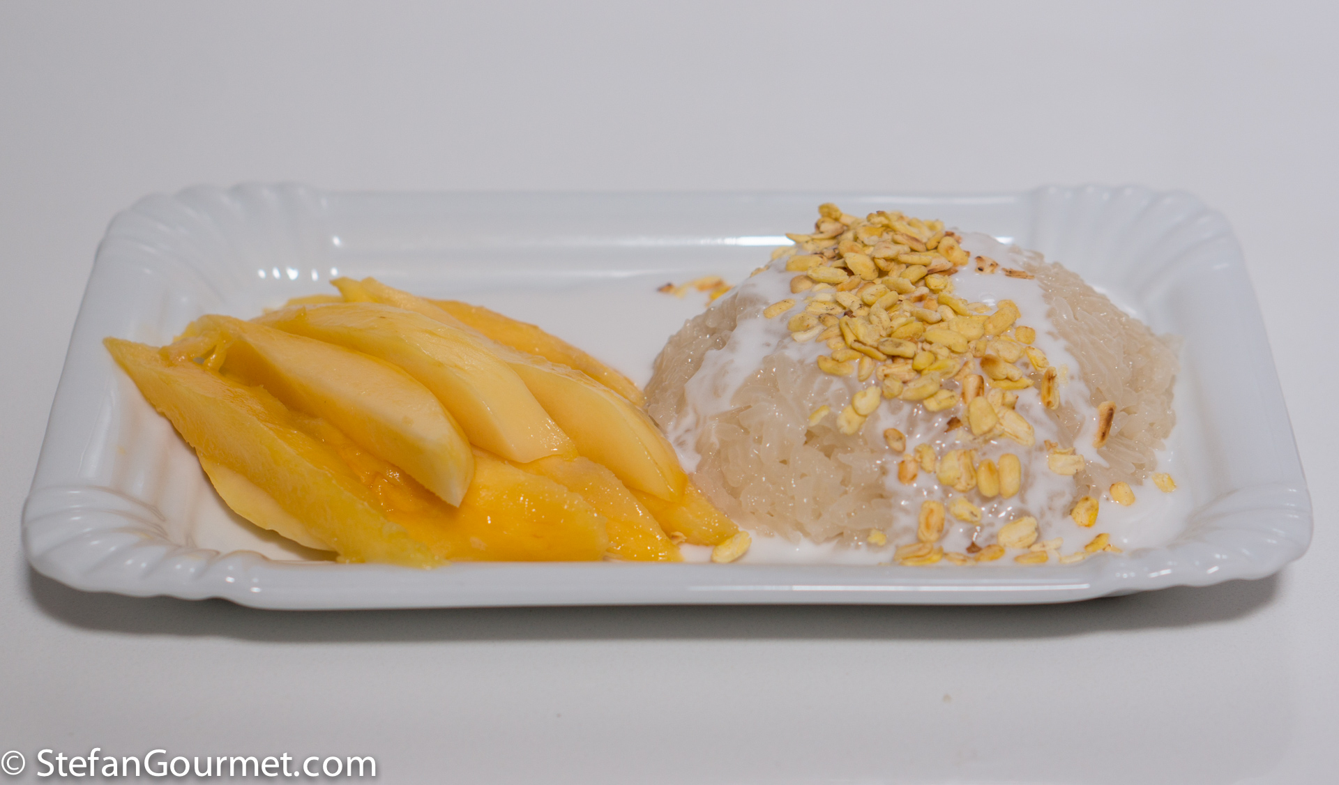 I used the recipe from Hot Thai Kitchen, which is very similar to the High Heel Gourmet’s. The only difference is that I used palm sugar rather than regular sugar, which is less sweet and more aromatic. Because it is less sweet, the risk of overpowering the sweetness of the mango is reduced. It is important to use Thai palm sugar, which is yellow rather than the brown palm sugar from Indonesia.