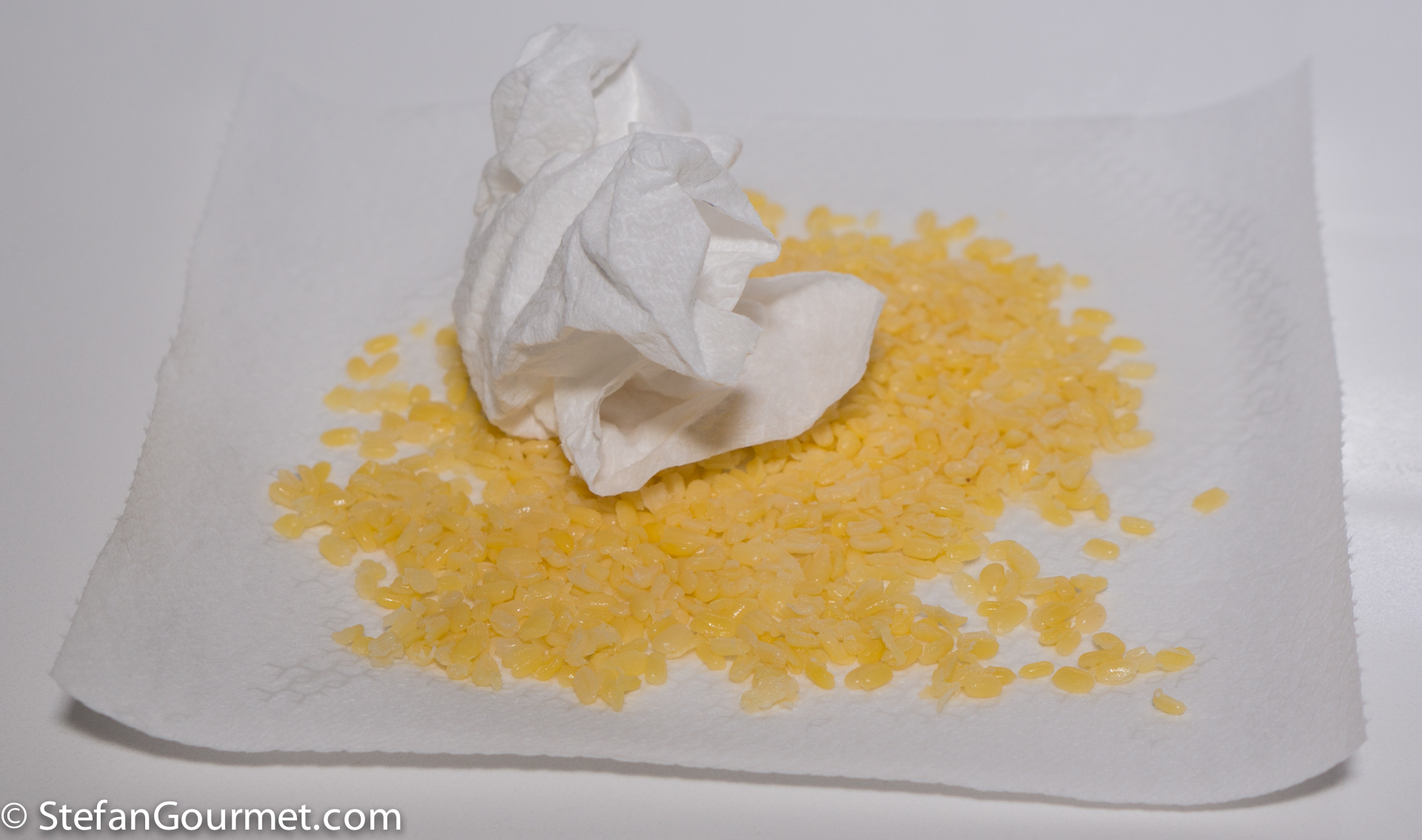 I have never been to Thailand, but I love Thai food (so I should probably go there at some point, if only for the food). Luckily my friend Melvin has been to Thailand many times, so together with Thai bloggers like the High Heel Gourmet and Hot Thai Kitchen I can get a pretty good idea of what authentic Thai food is supposed to taste like and how it is prepared. This mango and sticky rice has only a few ingredients but there is some technique involved in preparing it. The most important component of course is ripe mangos, which may be hard to come by. Luckily I found some from Pakistan that were sweet, juicy, and fragrant (rather than akin to a baseball, as often found in the supermarket). The components to finish the dish are a salted coconut sauce for a nice flavor contrast and crispy mung beans for texture.