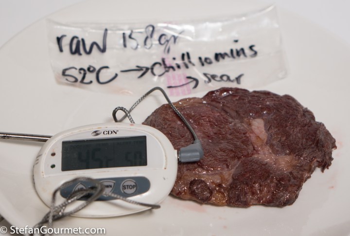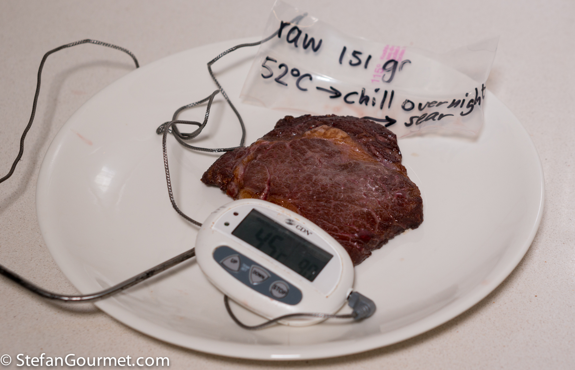 But can we conclude that chilling the steak fully to 5C/40F before searing is the best approach also for home cooks, as is stating by the ‘chilling fundamentalists’?