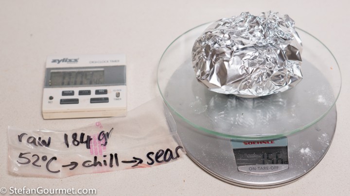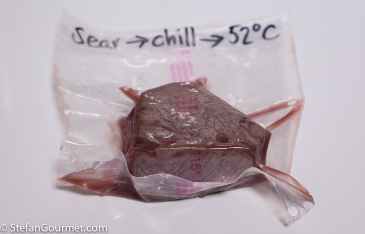 Then it was cooked sous vide at 52C/126F for 2 hours…