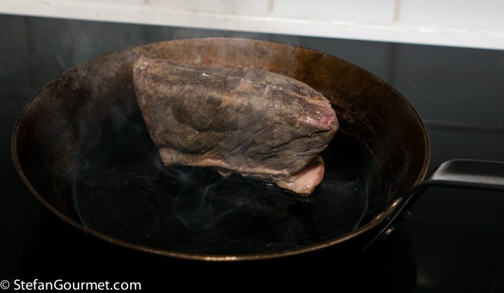 I chilled the meat to be able to store it and to be able to sear it well, as giving it a strong sear directly out of the sous-vide would overcook the meat. Click here to read more about that.