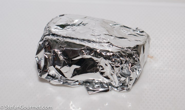 I allowed the beef to rest, wrapped in aluminum foil, because of the long sear.