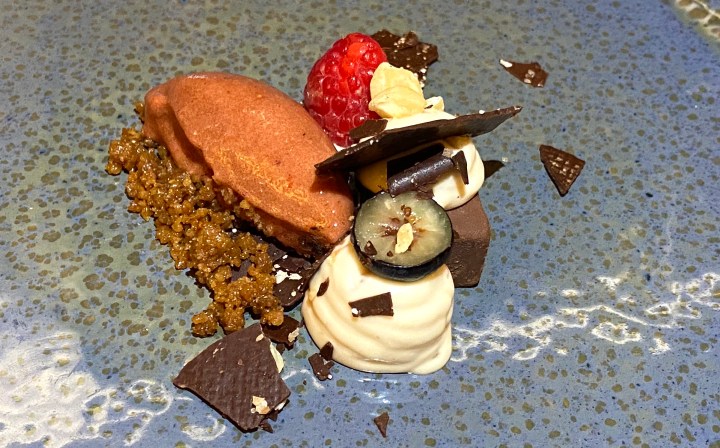 The fish main course was cod with octopus, samphire, and a bisque enriched with saffron. The cod and octopus were perfectly cooked and the bisque was very flavorful without being overpowering. The sommelier suggested we stayed with the rosé and he was right, as it was a great pairing. 9/10