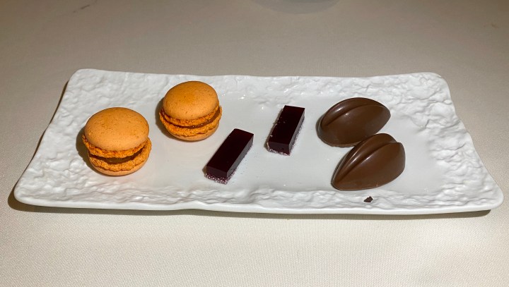 1. I also would try avoid a restaurant sited within the perimeters of a resort . . . visitors being primarily there for other reasons . . . but I do take your point. I found the menu interesting tho’ it somehow deteriorated in ‘excitement’ as it progressed from rather appetizing amuse bouches to a few macaroons & ‘associated stuff’, I quite liked some of the plating . . . the main interest for me again was the perusal of the wines served and your description of them . . .