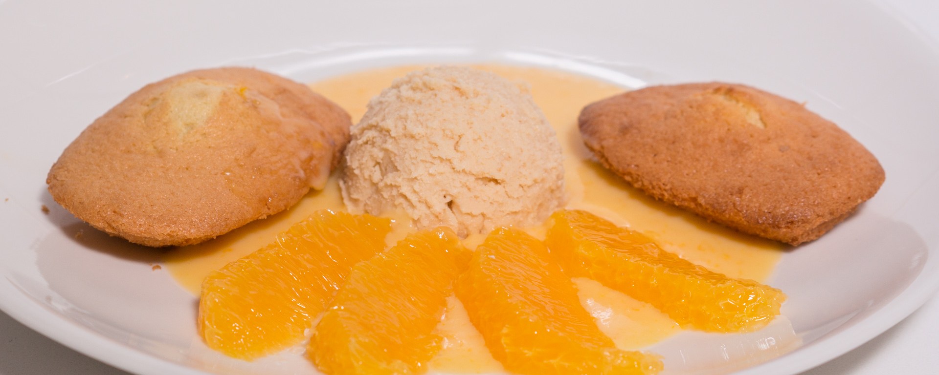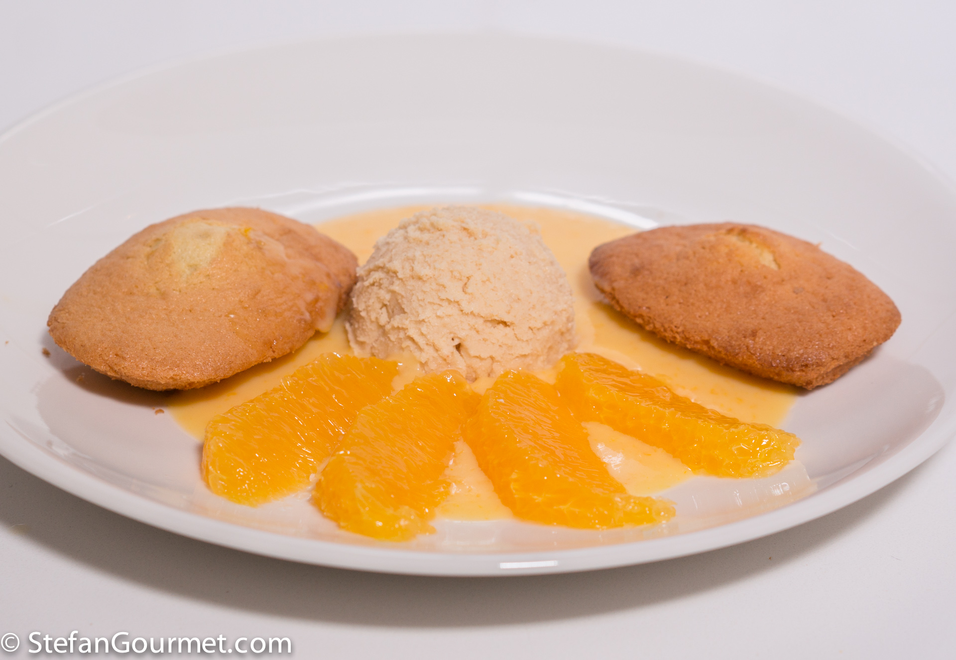 Almond Ice Cream, Almond Madeleine, and Orange Curd