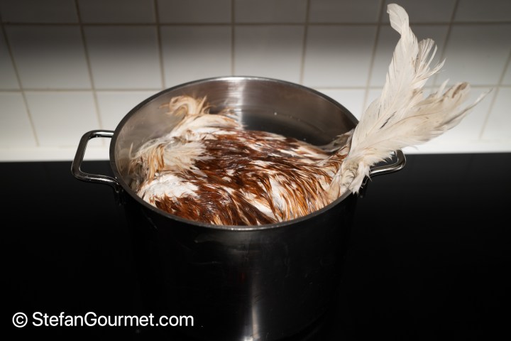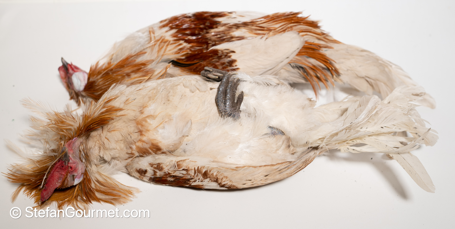 Friends of ours keep chickens in their backyard for the eggs. Their neighbor couldn’t sleep because of the roosters, and so the roosters had to go. As those friends are vegetarians, they asked if we’d be interested in eating the roosters. Of course I said yes and was mentally preparing myself for having to slaughter the roosters.