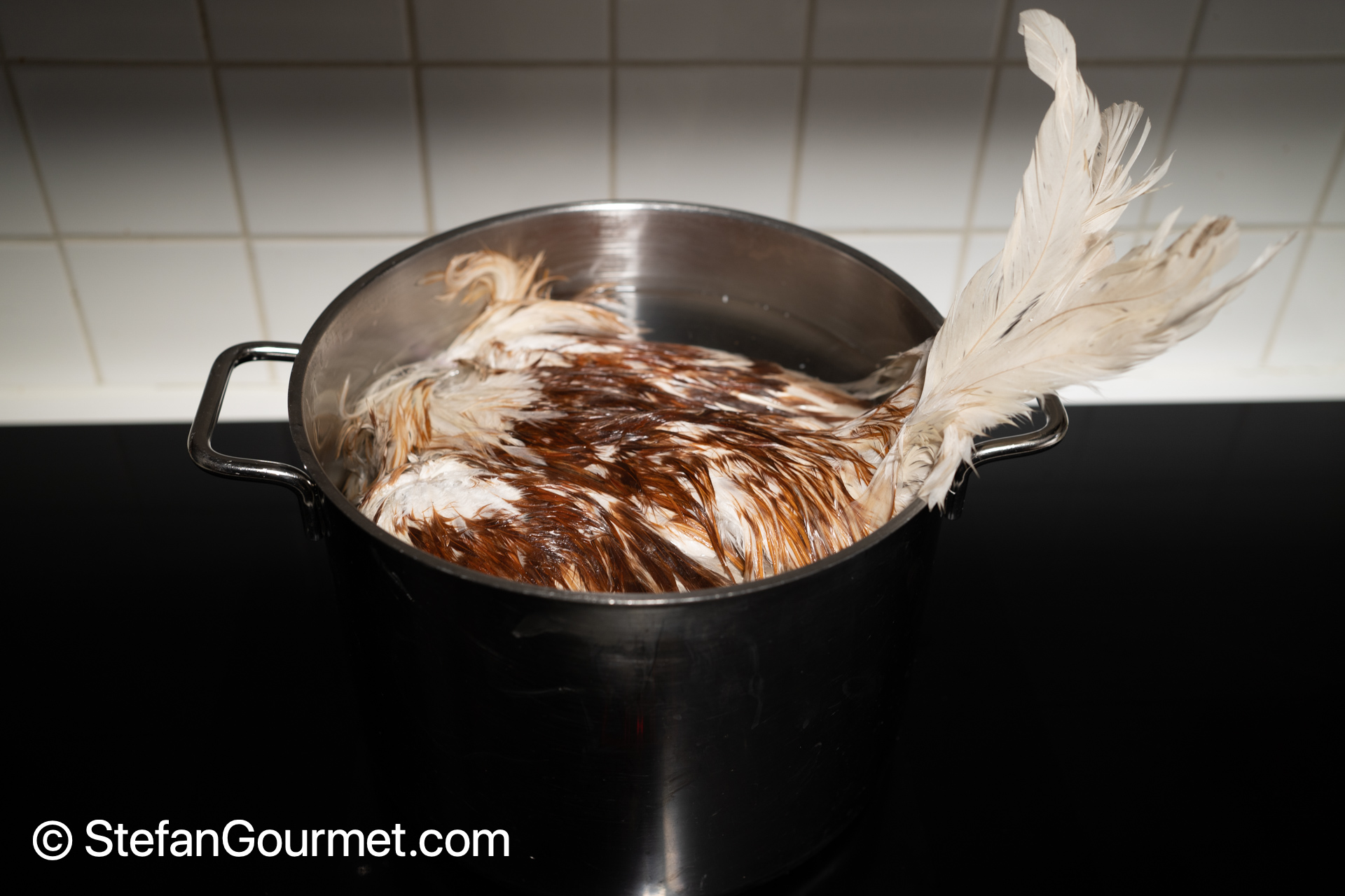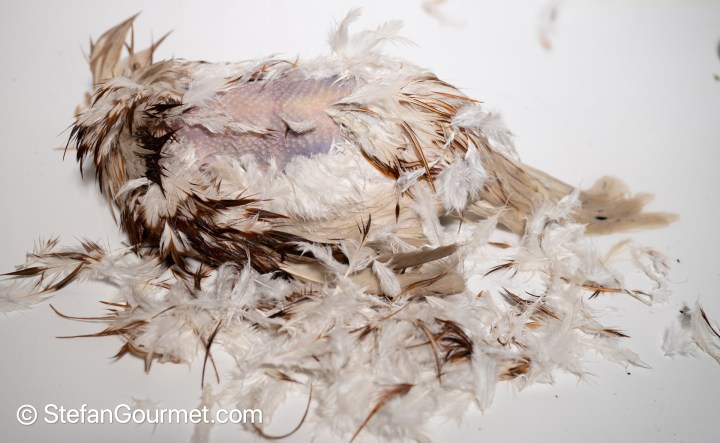 The plucking was still quite a chore, perhaps because the roosters were relatively old?