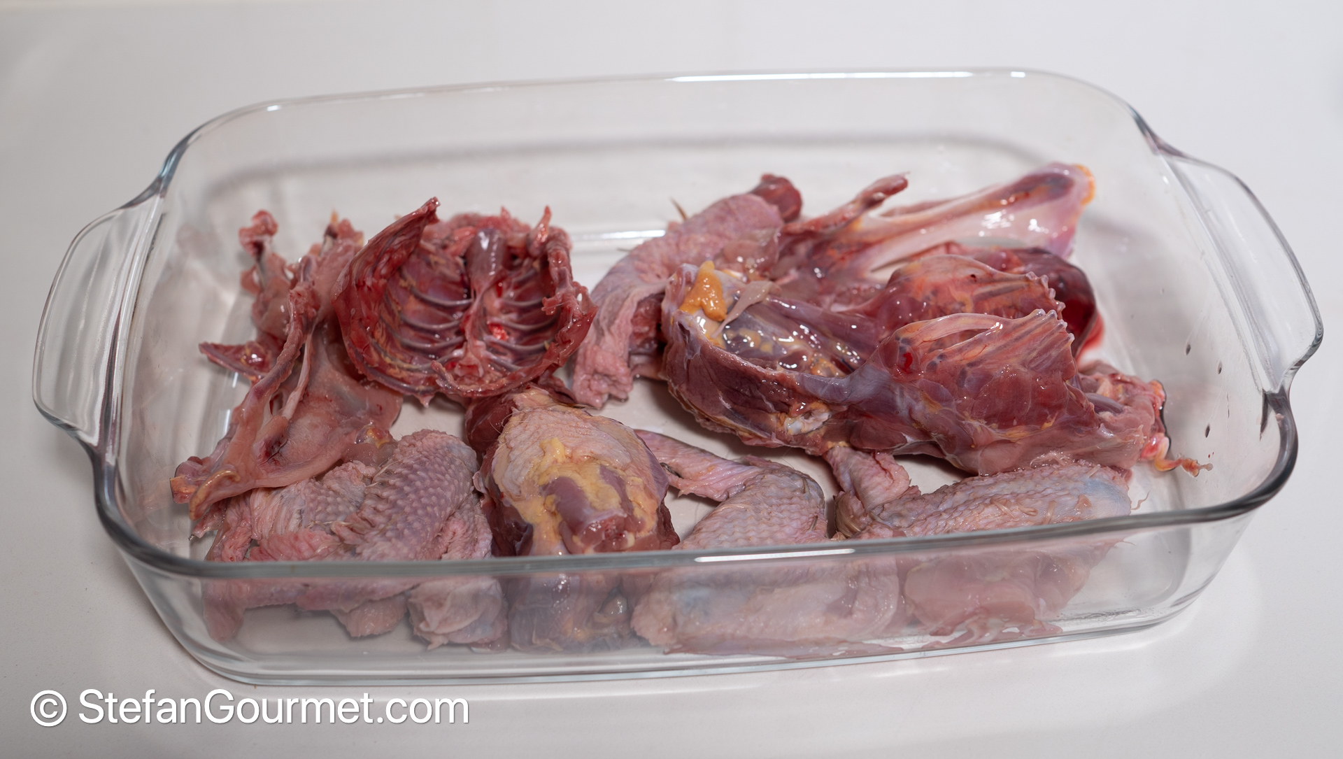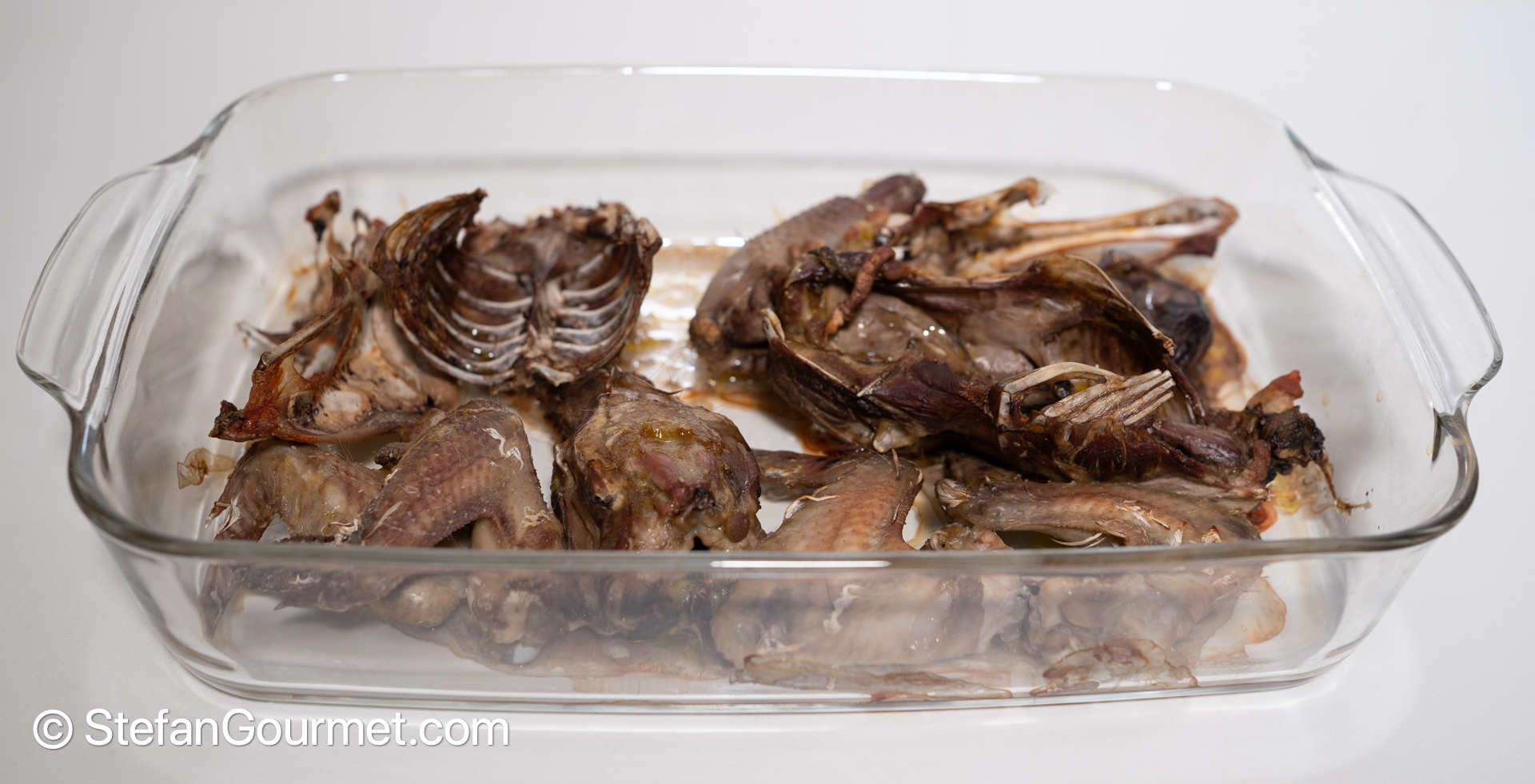 …and bake for half an hour at 190C/375F to brown the carcass to develop more flavor.