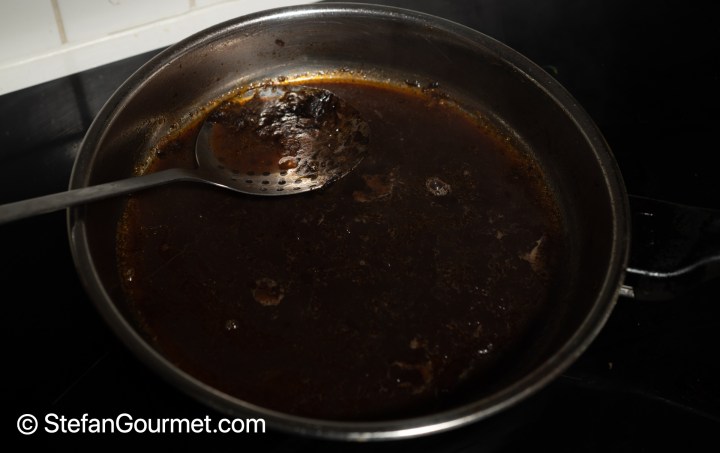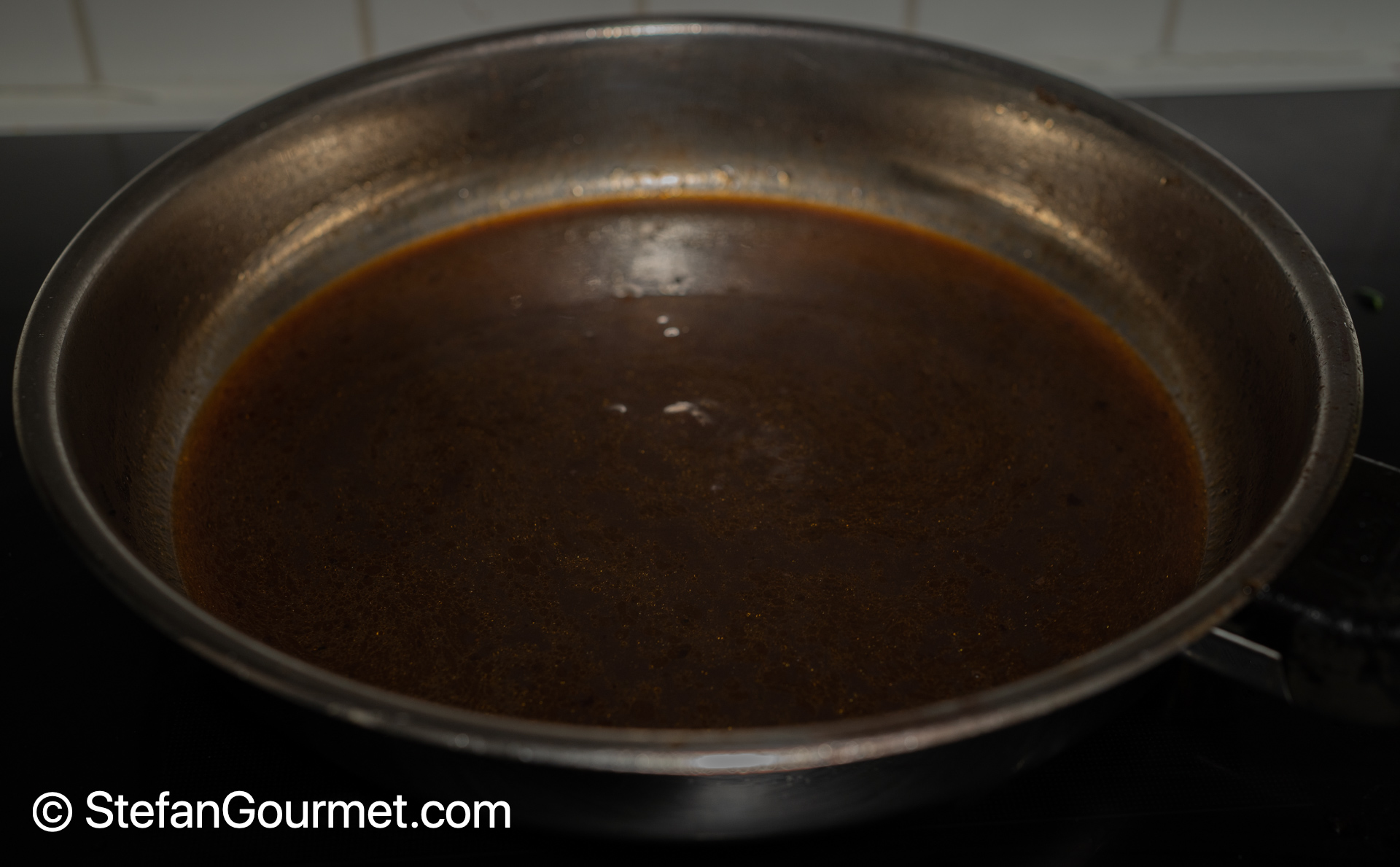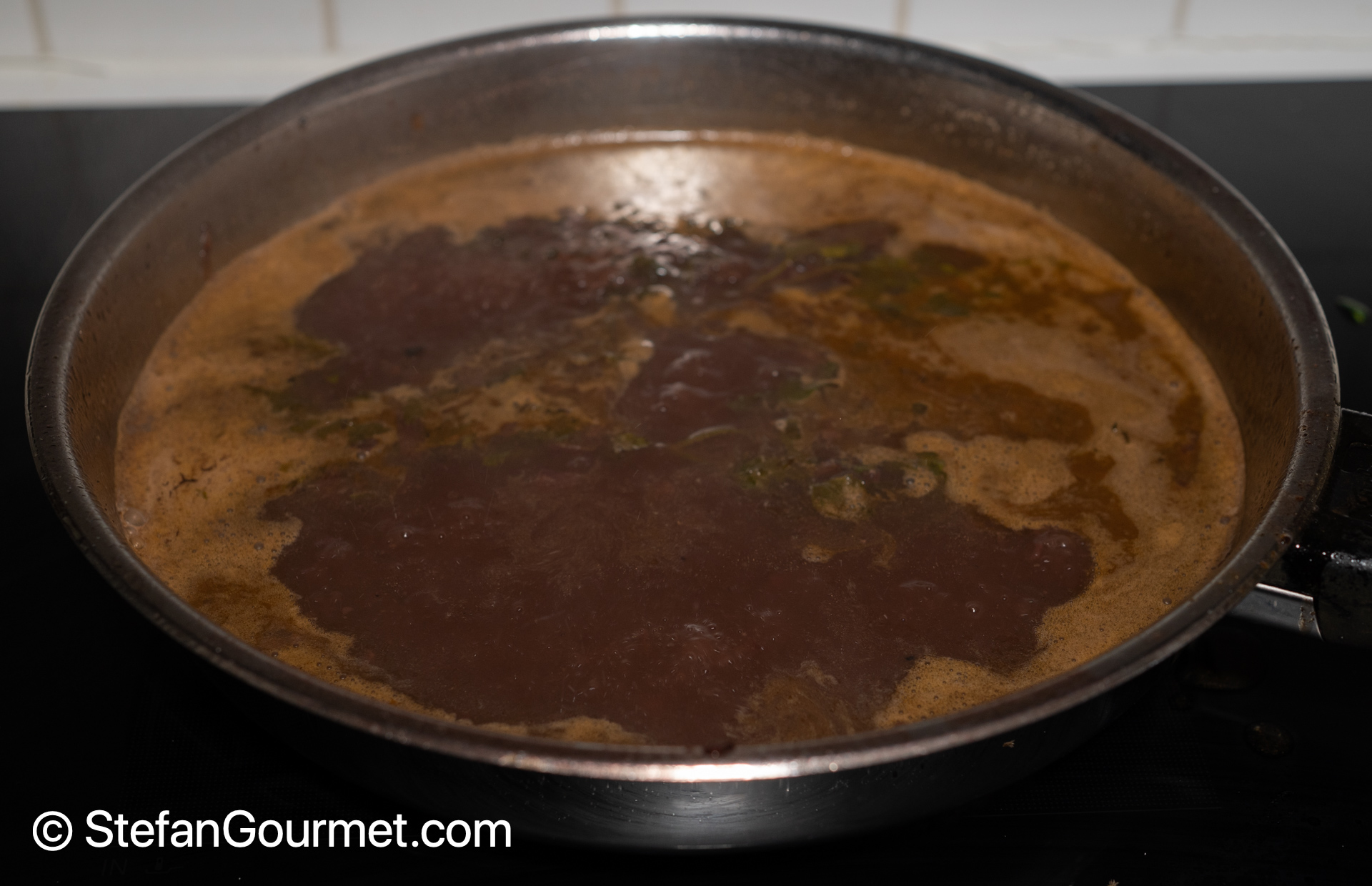Pour the liquid out of the sous vide bags with the meat into a frying pan, and bring to a boil.