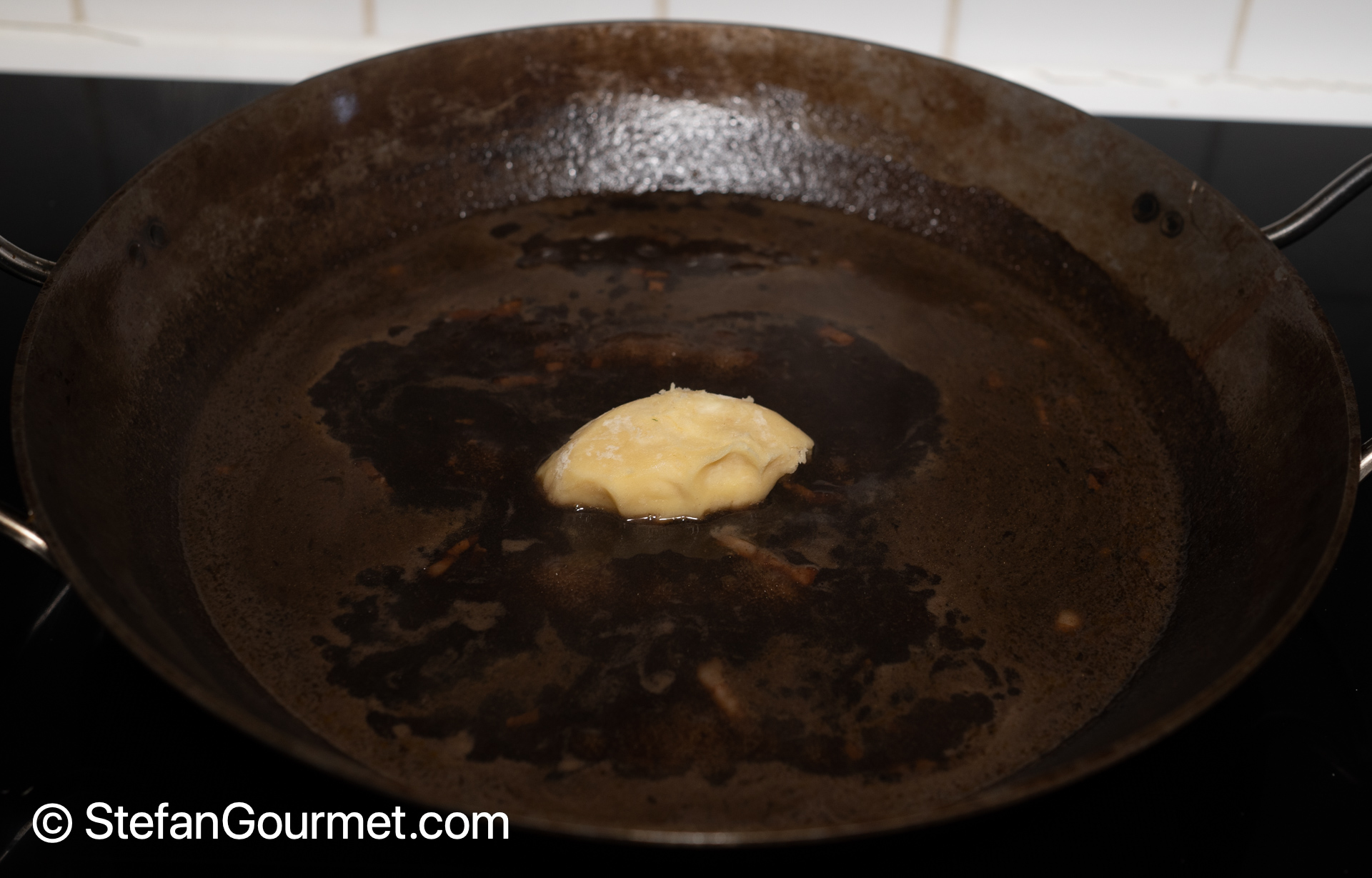 Brown the legs in the same pan, about 1 minute per side, until nicely browned. Then take out the legs and allow to cool.