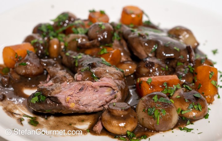 Oh Stefan – what a memory of a dish I used to prepare so often in the past and what a grand post breakfast tale to read on a Sunday morning ! Having defeathered a few birds in my time I was glad not to be doing the messy job . . . kudos to you for taking it on. Glad you were happy with the result . . . and you may just have reminded of the taste of the dish to prepare it myself in the near future . . . no arguments with your ingredient list whatsoever except an organic chicken, a full bottle of Merlot probably and the stovetop will be involved !! . . . and, just to say, am still enjoying clicking on ‘Stefan sings’ . . . a total surprise to me . . .
