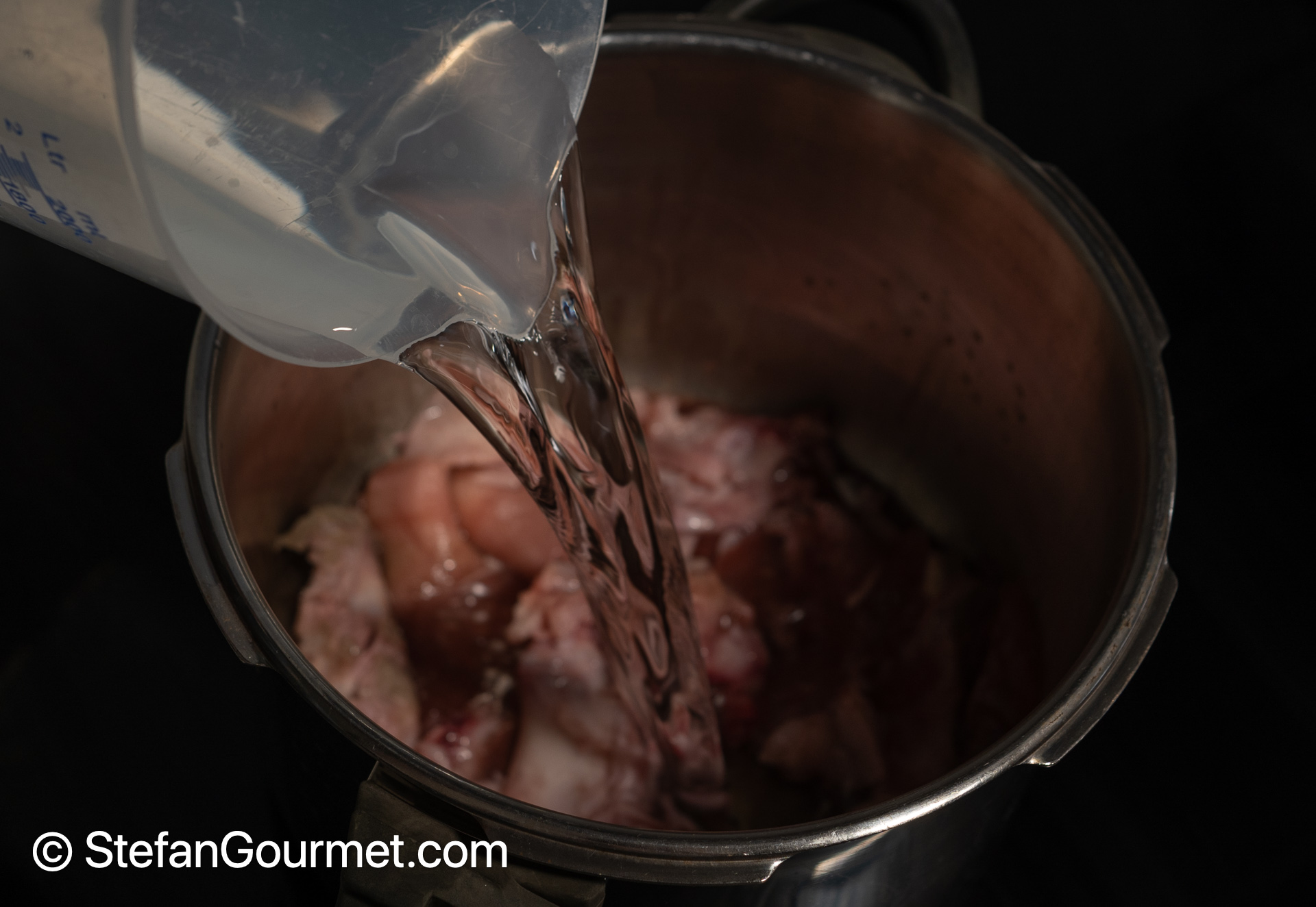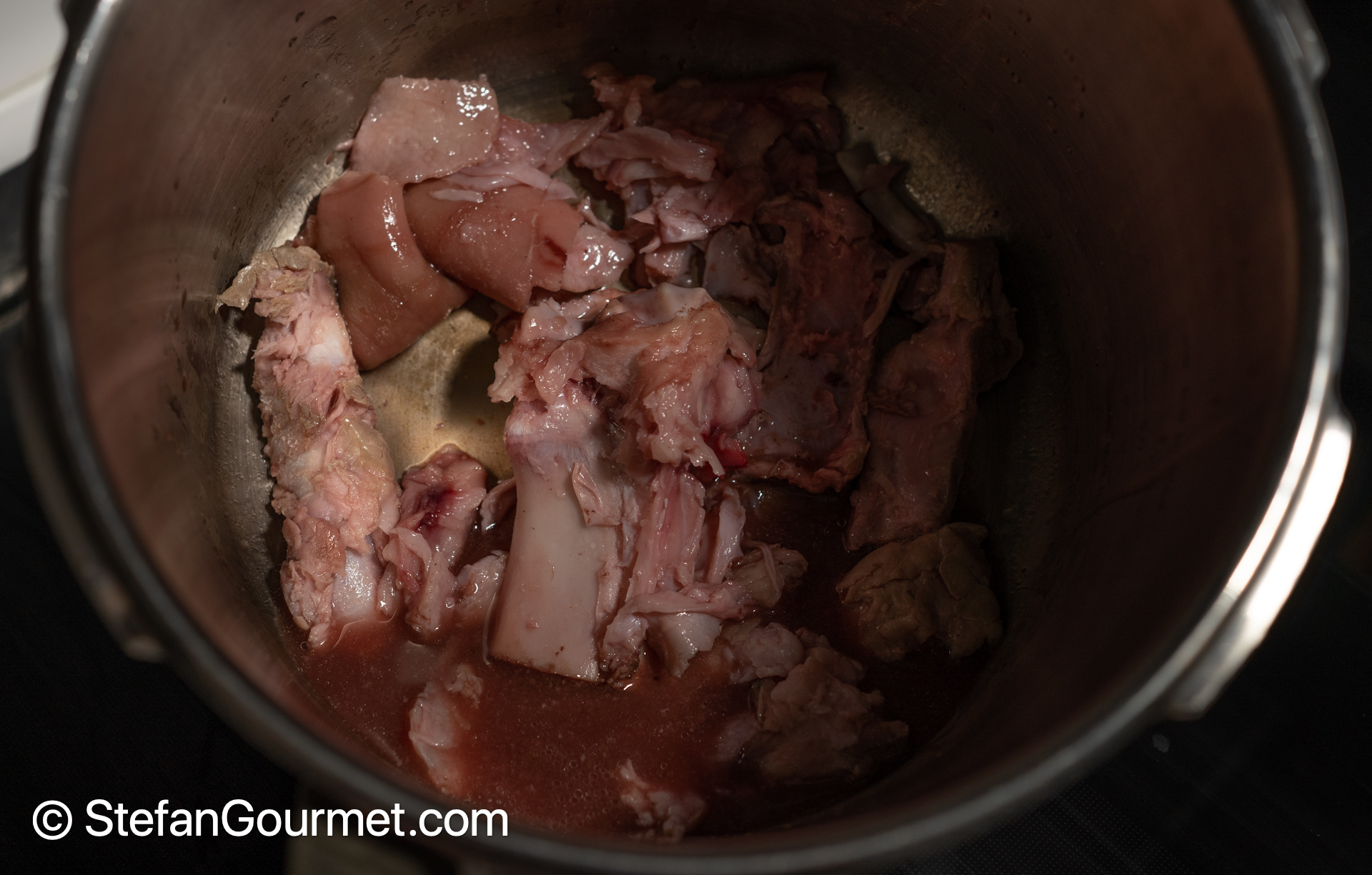 …or until the raw color has disappeared. This step is required to prevent a bad smell that may otherwise develop when cooking the pork for a long time below 60C/140F.