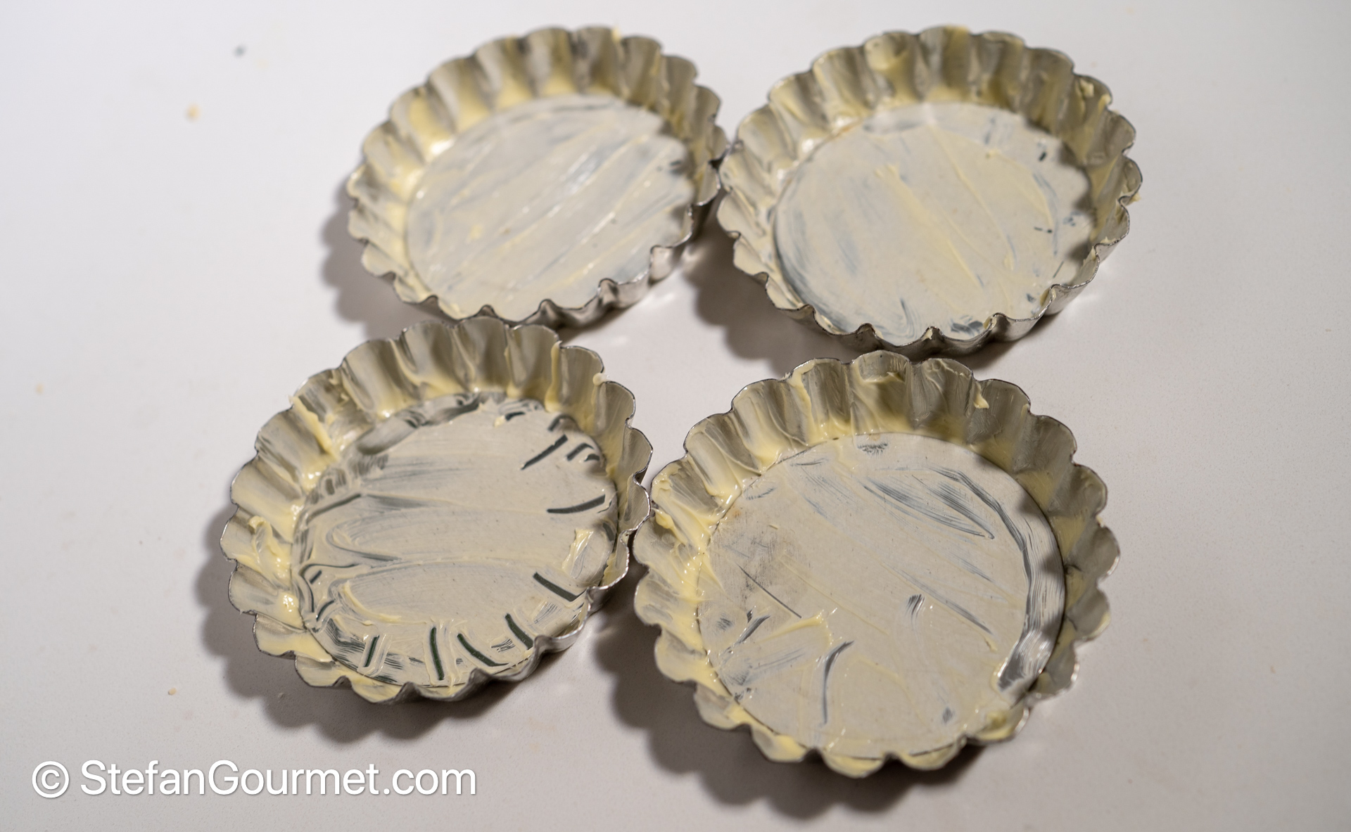 Butter the tartlet shapes.