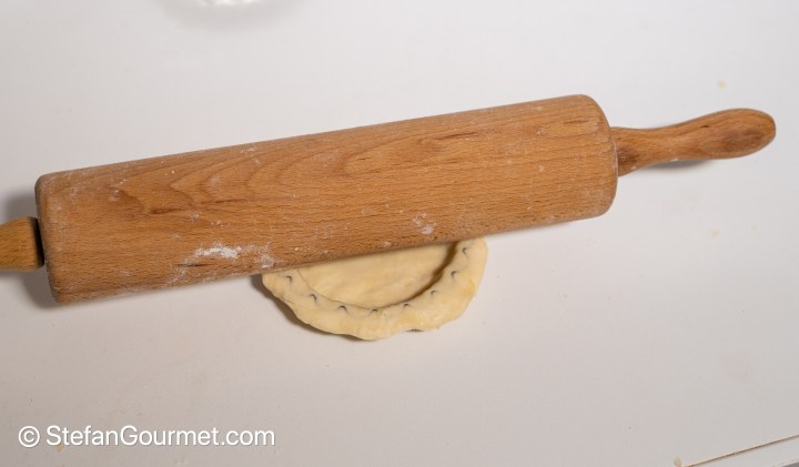 Use a rolling pin to remove the excess pastry.