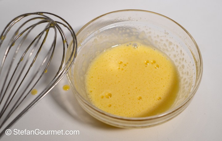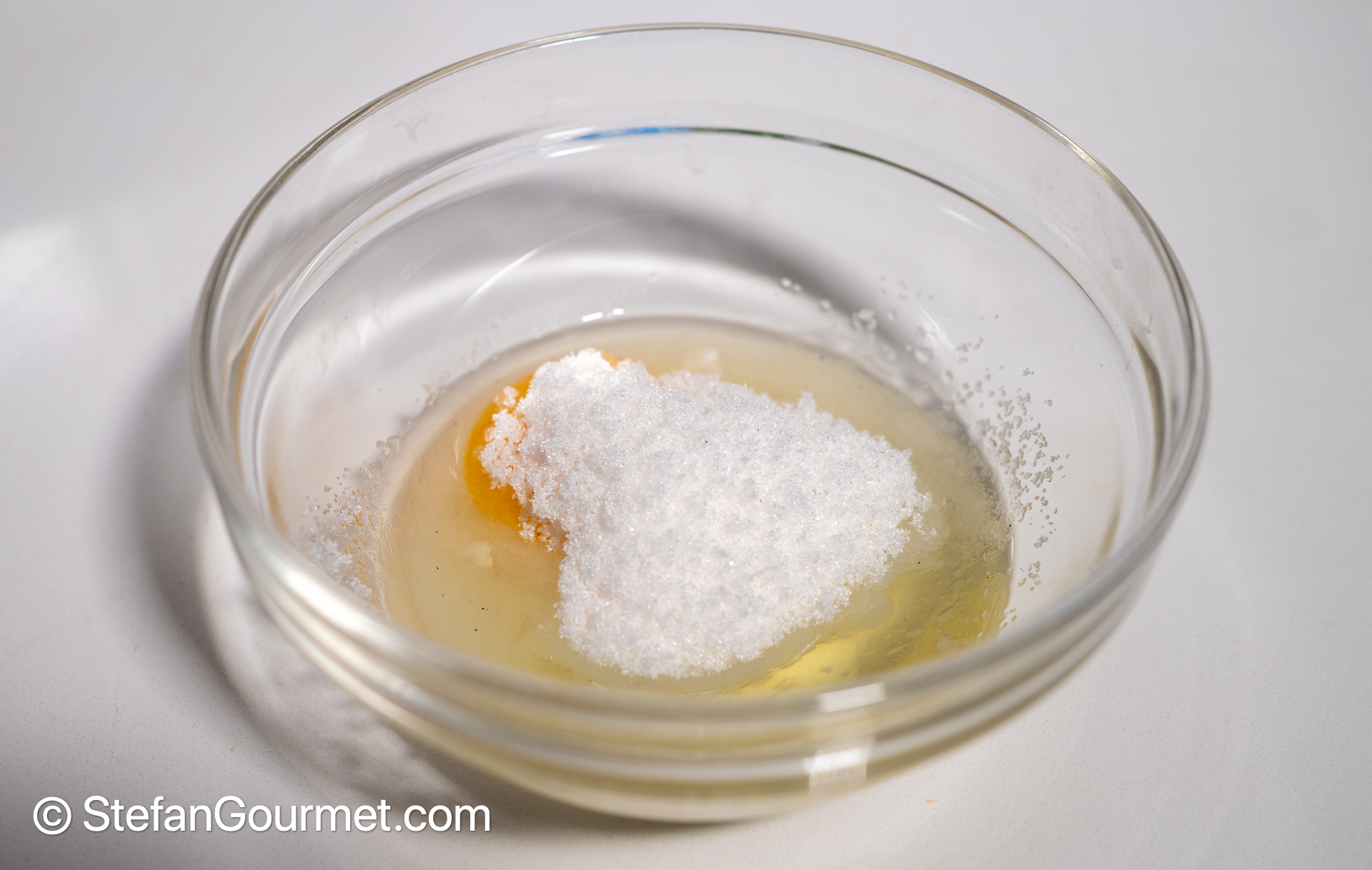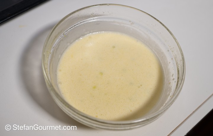In the meantime, combine an egg with 45 grams of sugar and a pinch of salt in a bowl.