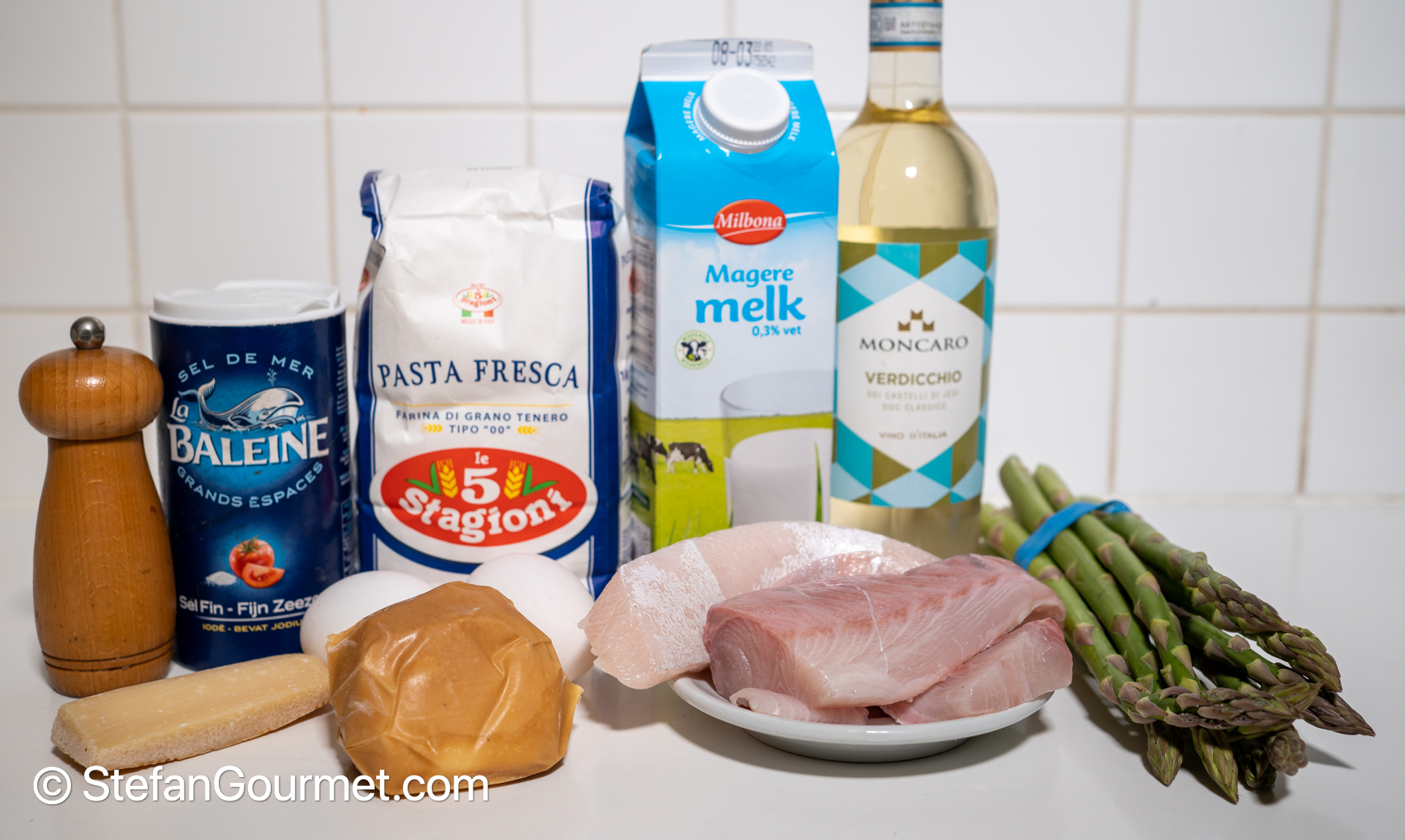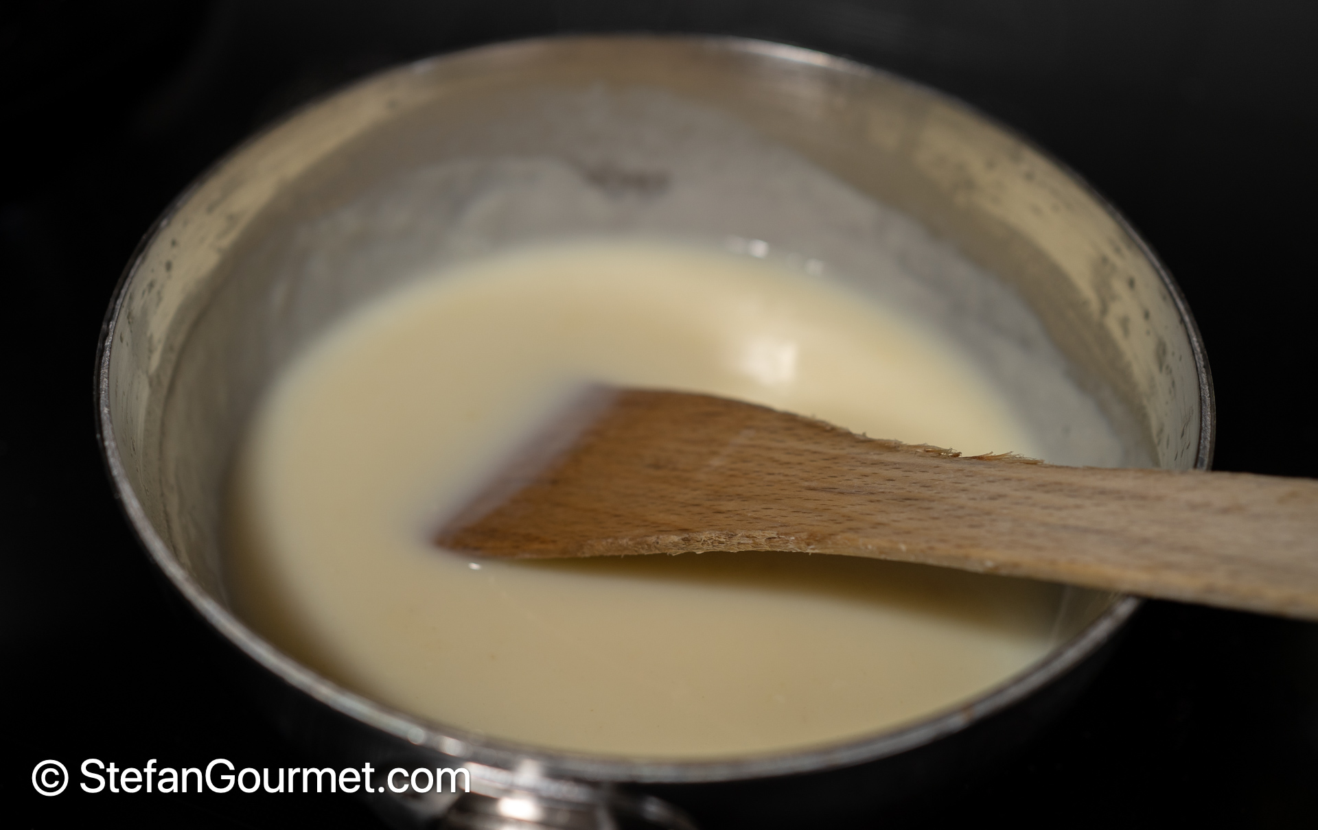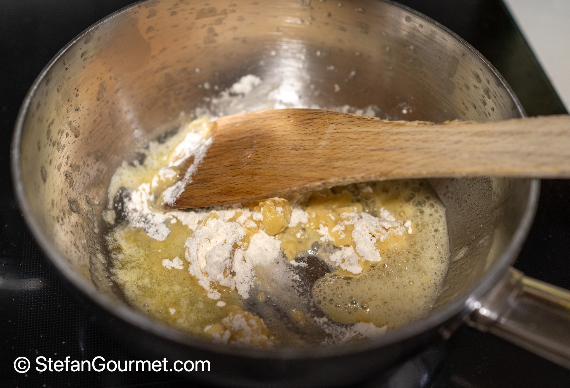 Make a white sauce with 250 ml of milk, 25 grams of butter, and 25 grams of flour, according to my instructions.