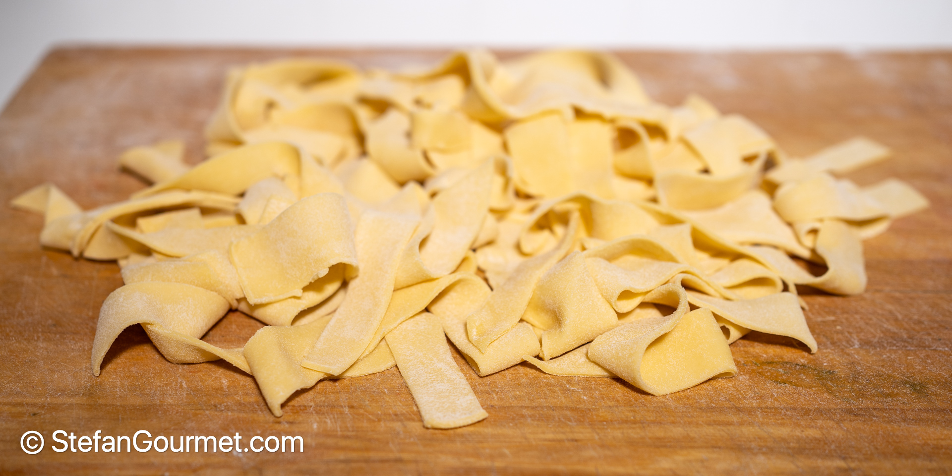 fresh pappardelle pasta, made using 2 eggs and about 200 grams (1 1/3 cup) Italian 00 flour