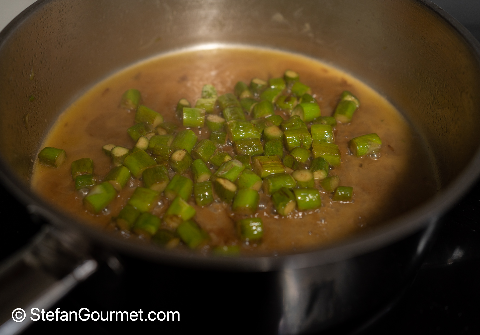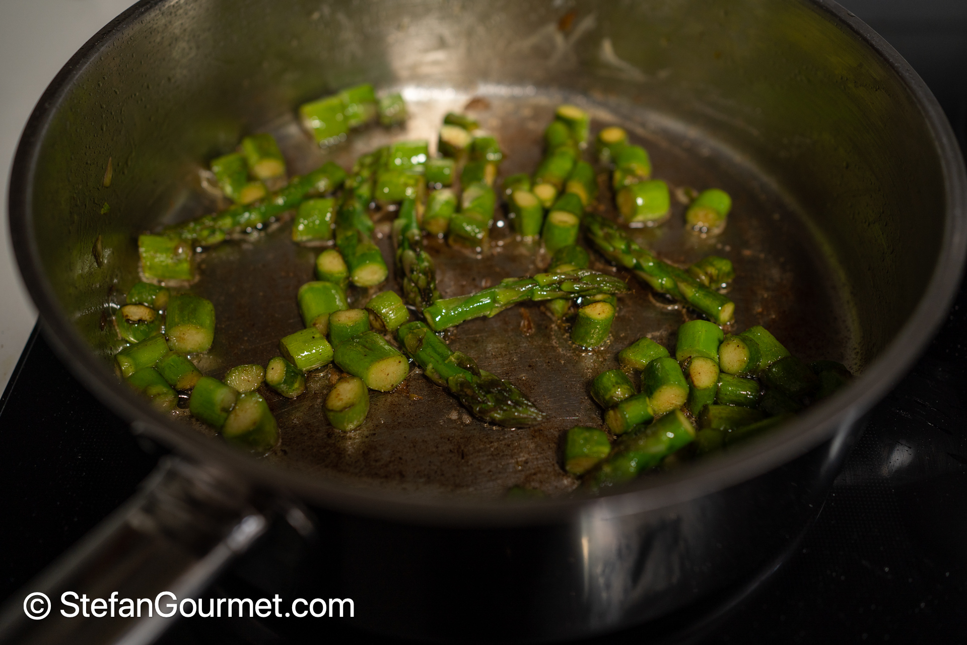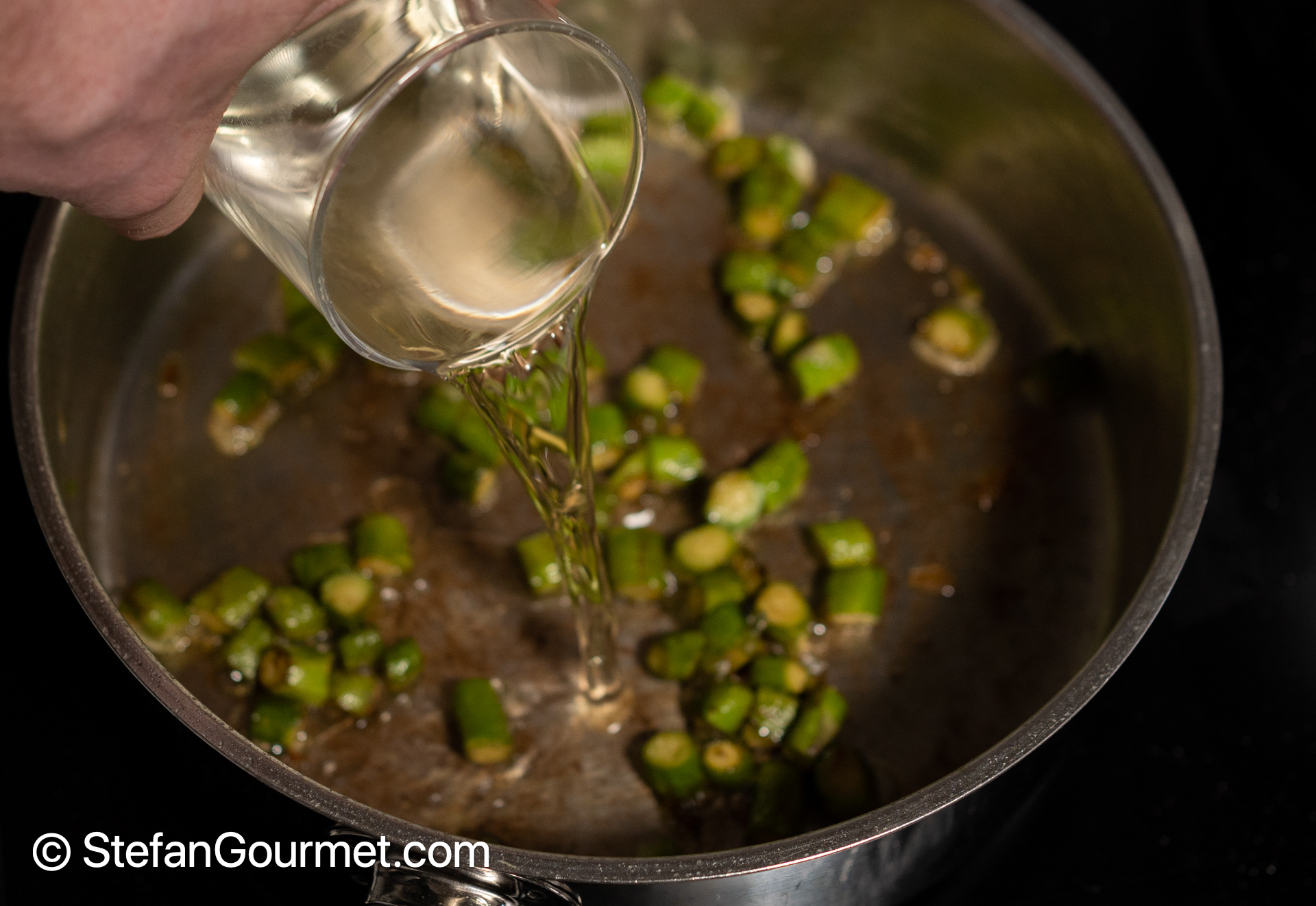 Deglaze the remaining asparagus with 80 ml of white wine.