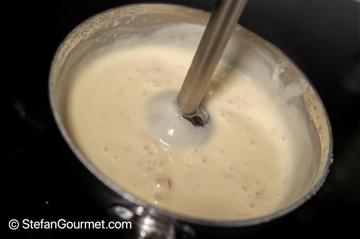 I used an immersion blender to speed up the melting as well as mix the sauce.