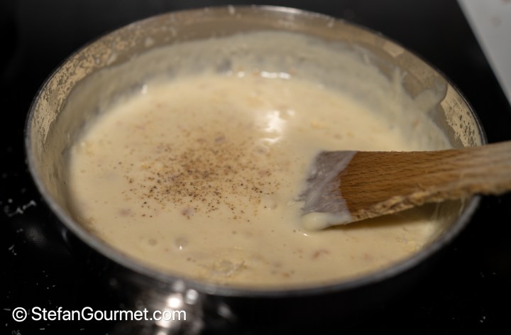 Season the sauce to taste with freshly ground white pepper and salt.