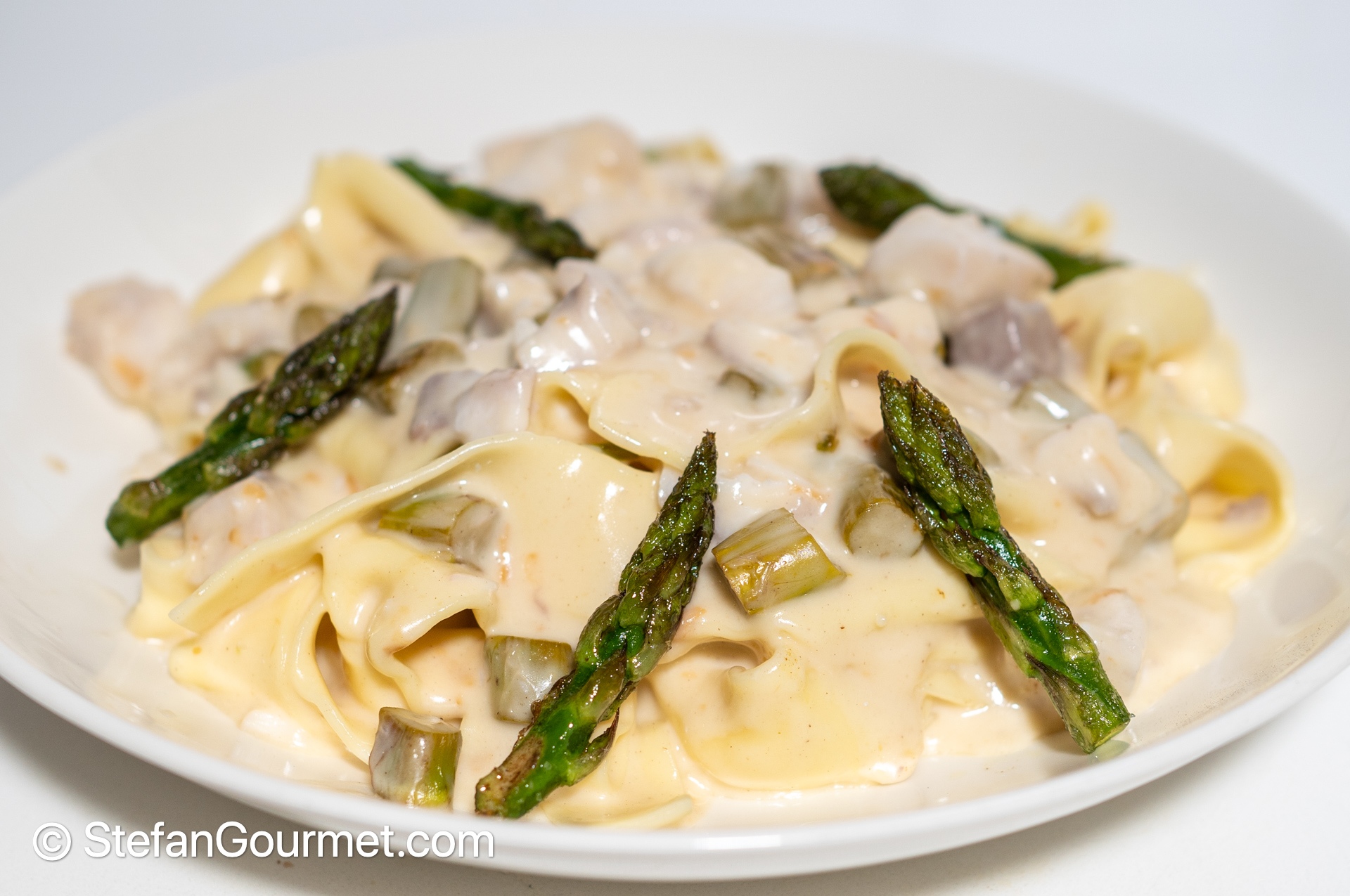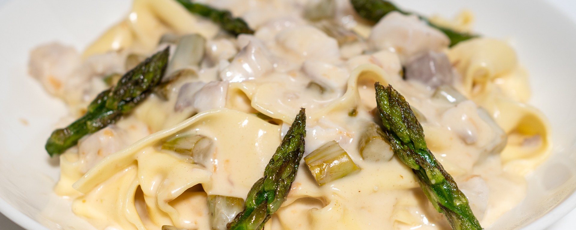 Fresh Pappardelle with Kingfish, Scamorza, and Green Asparagus