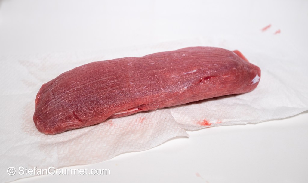 After the salted veal has allowed to rest for 1 hour, pat it dry with paper towels.