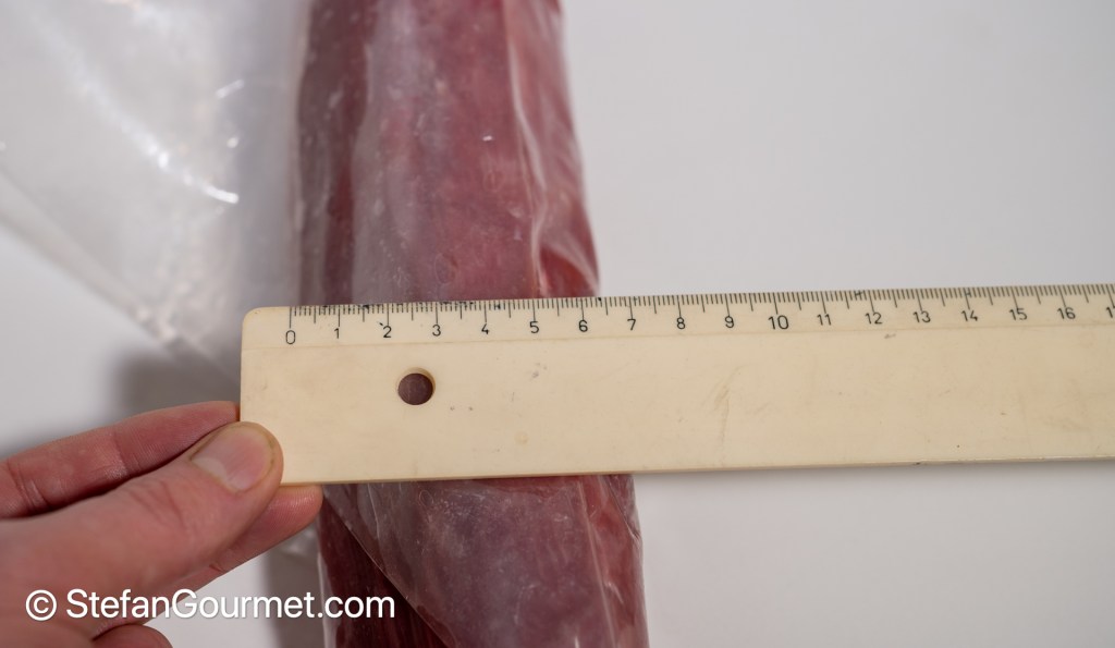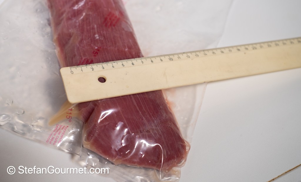 I measured the veal to find out the cooking time. My eye of round was about 8 centimeters wide…