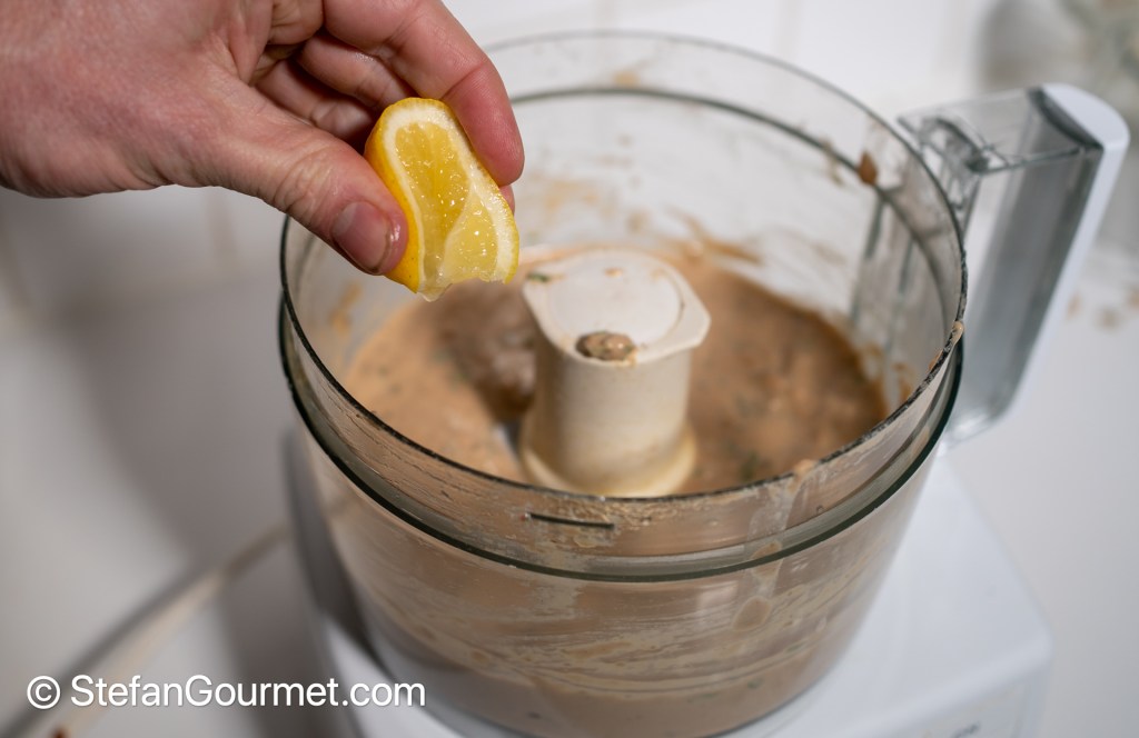 Pulse a couple of times to incorporate the oil and lemon juice. Taste whether any more black pepper or lemon juice is required.