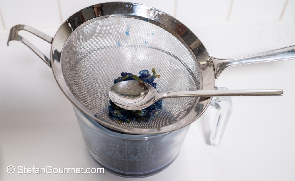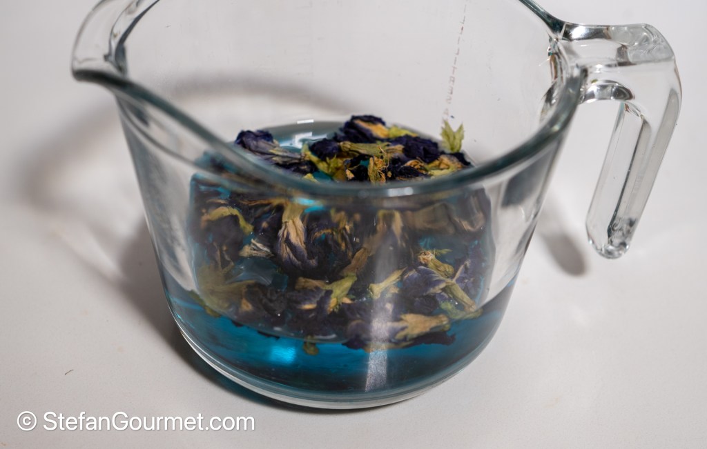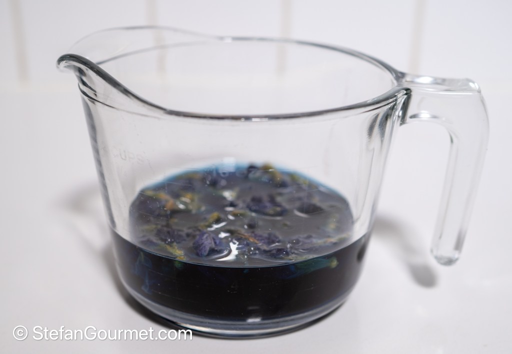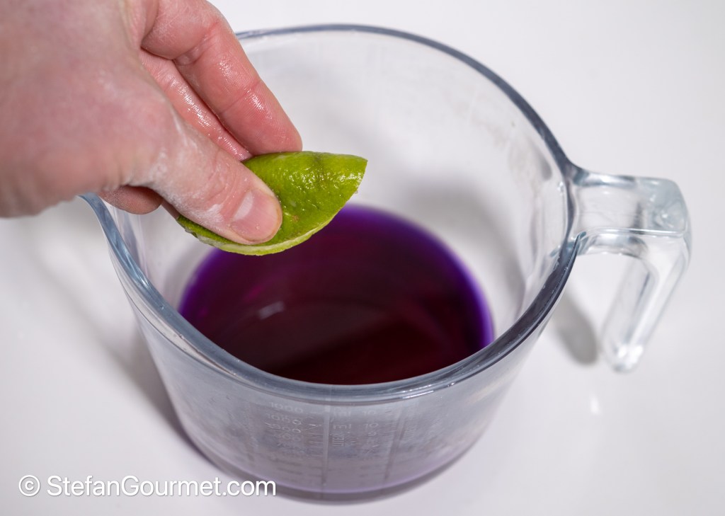 …and add lime juice to change the color from blue to purple. This ‘magic’ happens because the chemical compound from the flowers that creates the color responds to the acidity of the water.