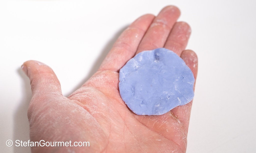 Take a piece of dough of 7-8 grams, and flatten it into a circle with your hands. Press down on the edges more than on the center, so that the edges are thinner.