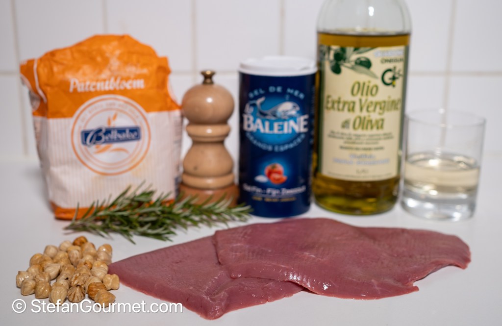 Fry the hazelnut-covered scaloppine in the rosemary-infused olive oil over high heat…