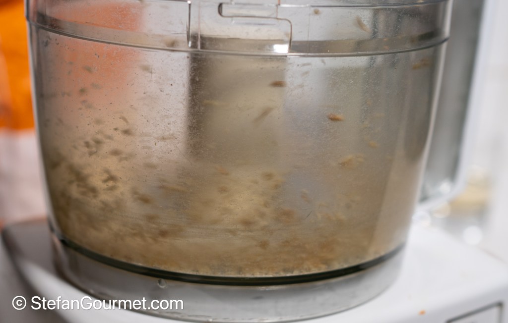 Grind half of the hazelnuts into a fine powder in the food processor. Chop the remaining half roughly.