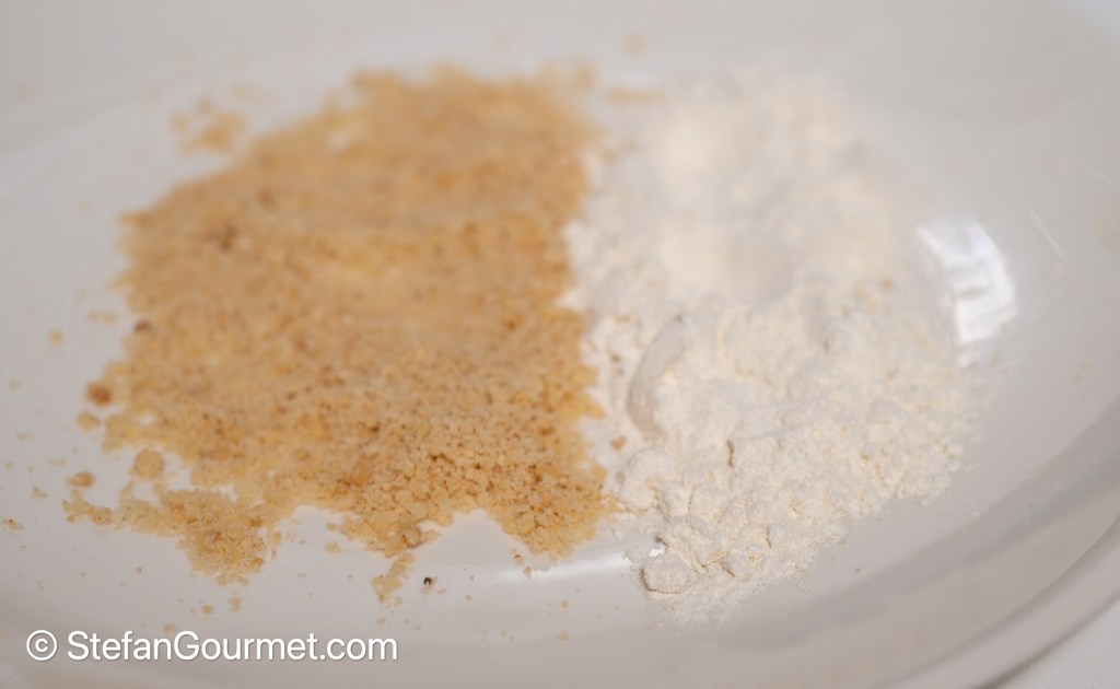 Coat the scaloppine on both sides with the hazelnut and flour mixture, pressing with your hands to make it stick as much as possible.