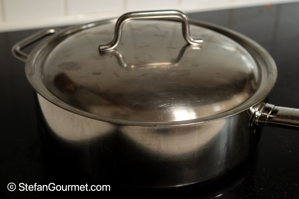 Cover the pan and allow to cook over medium heat, stirring regularly. The heat should be high enough for some browning to take place.
