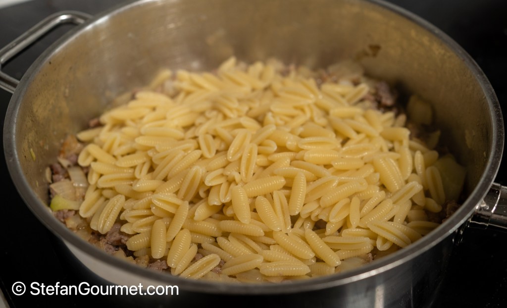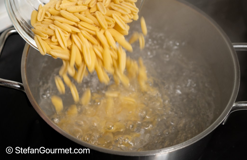 150-200 grams* short pasta, preferably gnocchetti sardi/malloreddus