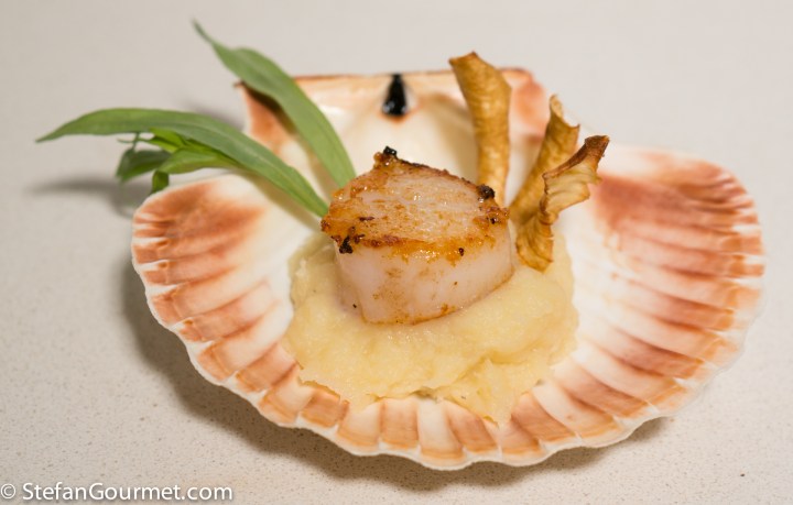 Another example of a great looking and delicious appetizer with only a few ingredients and short preparation is sea scallops with parsnip puree.