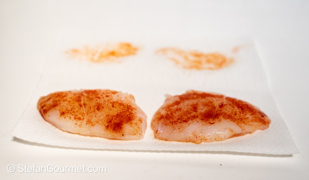 Season the monkfish with 1 teaspoon of smoked paprika and 1 teaspoon of table salt.