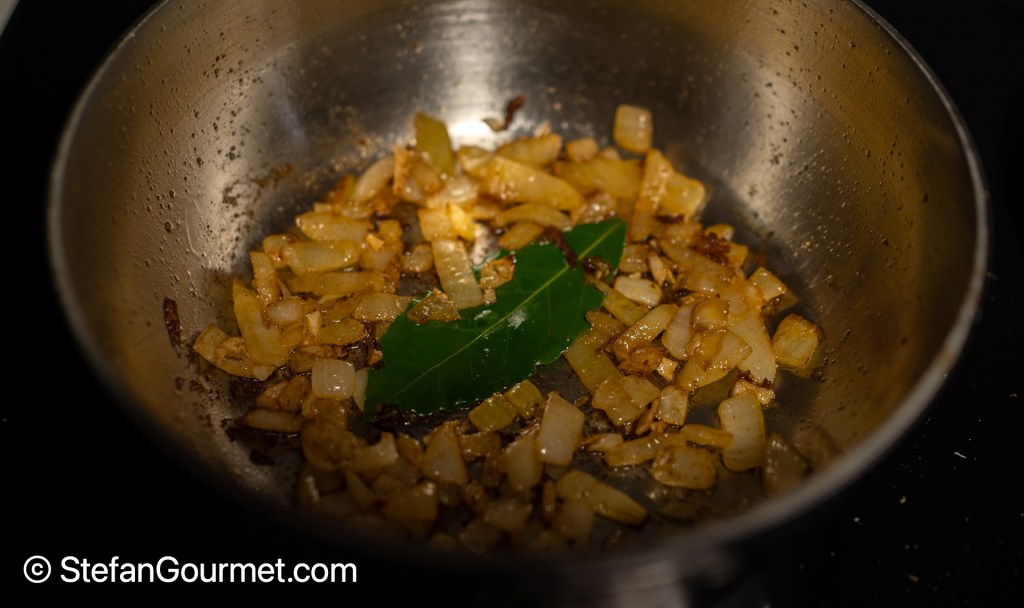 …and a bay leaf, and stir for another minute.